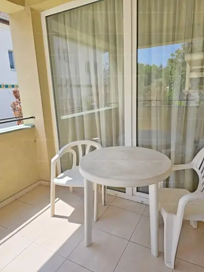 Parking is available in the garage located within the residential complex, accessible through an automatic electric gate.
