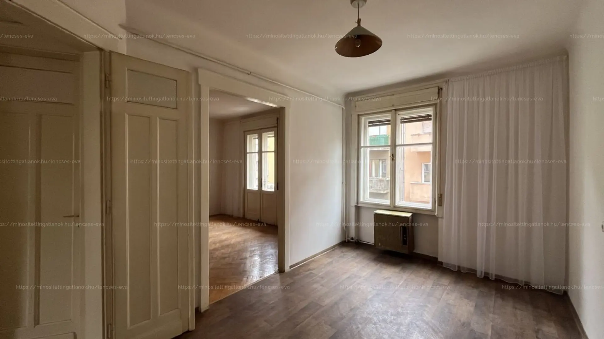 **In Újlipótváros, a renovatable apartment is for sale, ready for immediate occupancy. It has 2 rooms, an alcove, separately accessible rooms, a pantry, separate toilet, bathroom with bathtub, a 2 sqm balcony, located in a corner condominium built in 1927 and in good condition. The building has external corridors, gas convector heating, entrance hall, ceiling height of 3.1 meters. The condominium has 32 apartments and a garden. East-facing, with a 3 sqm cellar, windows overlooking a side street, water meter, unencumbered, two entrances to the property. The common cost is 21,200 HUF/month.**
