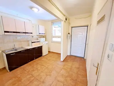 Az 1980-ban épült, kettéosztott 8 lakásos társasház a városrész főútja közelében, mégis csendes utcában található. A komfortos lakásban egy szoba, egy fürdőszoba-WC helyiség, egy előszoba, egy konyha-étkező és egy kamra kapott helyet. A szoba parketta-, a többi helyiség járólap borítást kapott. Az otthon melegét gázkonvektorok biztosítják, a melegvíz ellátásáról Junkers típusú gázüzemű vízátfolyós rendszerű vízmelegítő gondoskodik. Az ingatlanhoz tartozik még egy saját használatú 10 m2 nagyságú fedett hátsó terasz, egy belső udvarról megközelíthető 14 m2 nagyságú garázs és egy különnyíló 12 m2-es saját tároló. A külső- és belső nyílászárók eredetiek, normál állapotúak. Az ingatlanban az elmúlt években néhány felújítás történt: a lapostető víz elleni újraszigetelése, a belső vízhálózat cseréje konyhai és fürdőszobai mosógép-kiállással megvalósult, valamint a saját hidegvíz- és gázmérőóra beszerelésre került. Az ablakok új redőnnyel ellátottak, a bejárati ajtó műanyagra cserélt. Az összközműves ingatlanban a részben felújított egyfázisú (16 Amper) villanyhálózat körönként szerelve, valamint a garázshoz külön kialakított egyfázisú (10 Amper) villanyvétel, a gáz, a vezetékes víz és a csatorna rendelkezésre állnak. A lakás megközelítése külső feljáratú fedett lépcsővel biztosított, a szintén fedett terasz kisebb összejövetelek megtartására is alkalmas lehet. Az otthon átalakításával különnyíló WC-helyiség, egy plusz félszoba, valamint egy konyhaszigettel kialakított étkezős konyha is kialakítható. A jelenlegi konyhabútor gépészetével a vételár részét képezheti. A belső kert egy része megállapodás szerint saját használatúvá tehető. A saját garázsbeálláson kívül az udvaron igény szerint további gépjárművek parkolása is megoldható. Az ingatlan további előnye, hogy a társasháznak nincs közös költsége. Ideális választás családalapítás előtt álló fiatal párok és egyedülállók, valamint befektetők számára egyaránt. Elhelyezkedése kiváló, a közelben minden megtalálható: többféle bevásárlási lehetőség, rendelőintézet, patika száz méteren belül, a tömegközlekedés megoldott. A hirdetés tájékoztató jellegű, az ingatlanról pontos adatokat a megtekintést követően a tulajdonos által elmondottak alapján tudunk garantálni! A vásárlás finanszírozásában az OTP kedvezőbb kamatozású hitelkonstrukcióival és egyéb banki termékek lehetőségével tudunk segíteni. Az adásvételi szerződés lebonyolításához korrekt ügyvédi közreműködést tudunk ajánlani. Amennyiben felkeltettem érdeklődését, hívjon bizalommal!