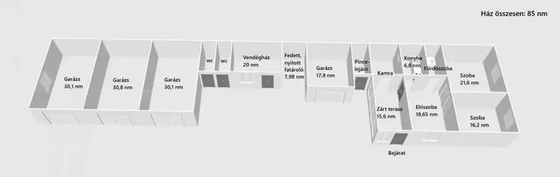 Kiemelt hozzáadott érték a hármas garázs együttes, amely külön utcából megközelíthető, egybenyitható, igény esetén bérbeadható, ezáltal rugalmasan hasznosítható.