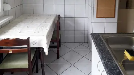 Villamos, busz pár perc, kis piac közvetlen az épület mellett.