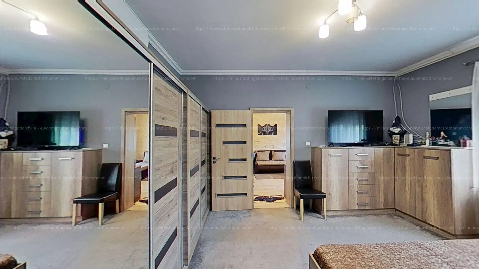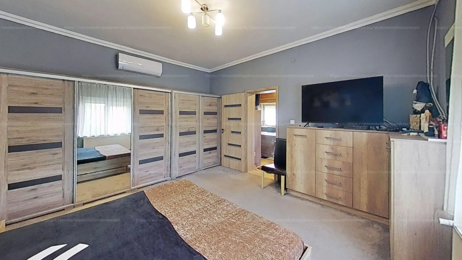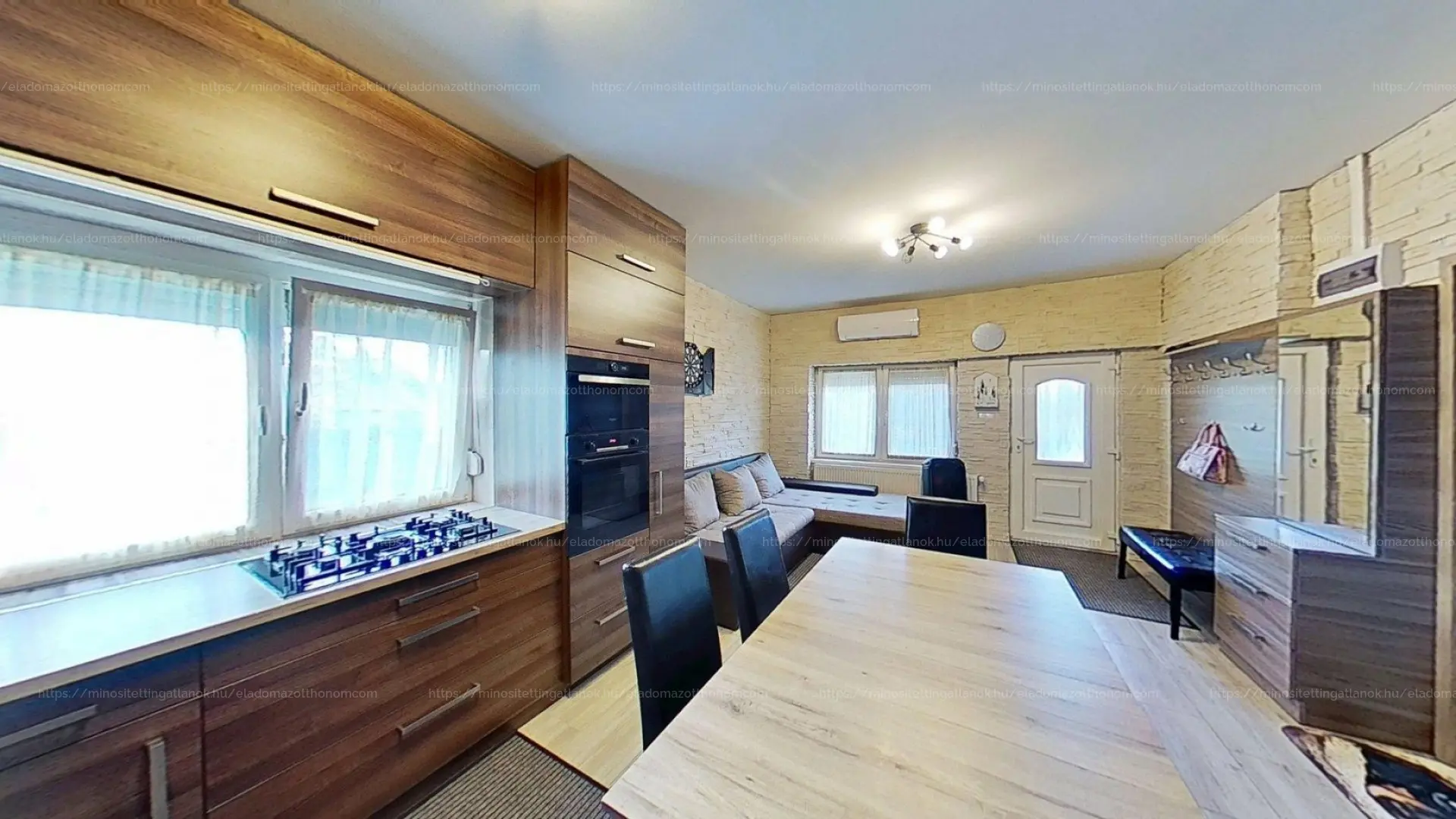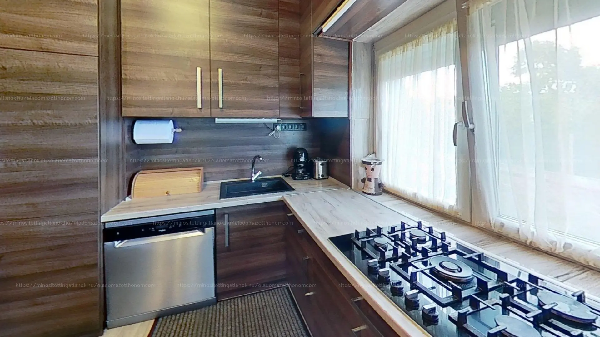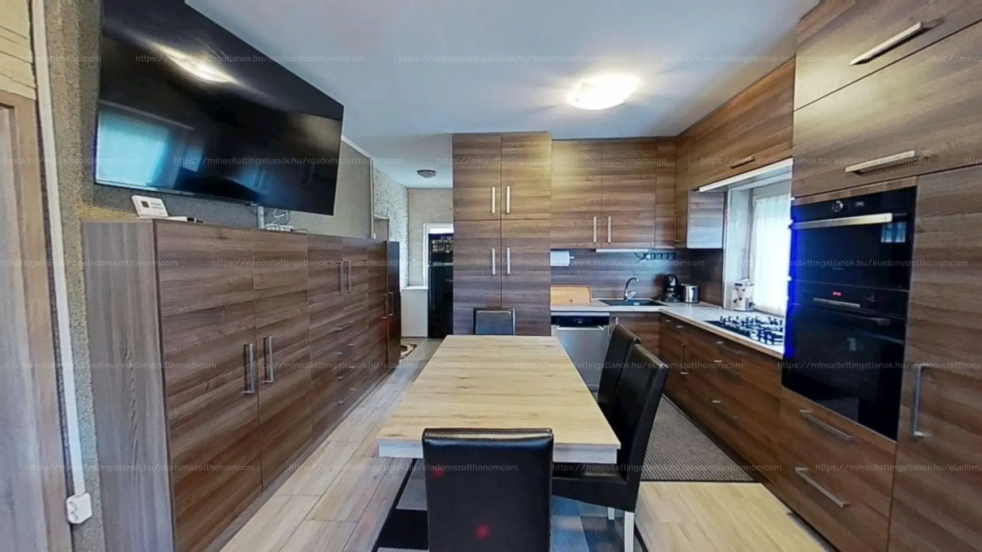 -valamint új beépített konyhabútorral és gépesítéssel (Bosch villanysütő 5 fejes gázrózsákkal, mosogatógép, gránit mosogató és csap) , illetve 3 db 3,5 kW-os Gree klímával is gazdagodott a ház, melyek természetesen a vételár részét képezik.