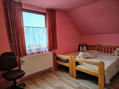Az emeletre tölgyfa lépcső vezet 🪵, ahol két nagyobb és egy kisebb szoba található, valamint egy zuhanyzós fürdőszoba. 🚿