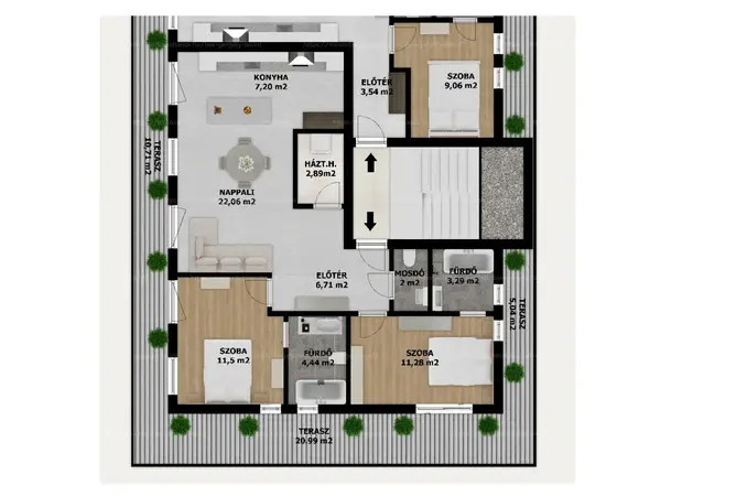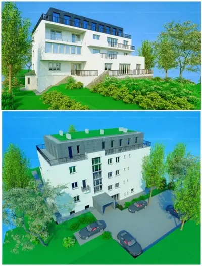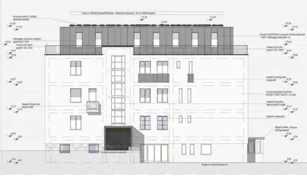 A vállalkozó által két lakás kerül kialakításra egy 3 szintes felújított kislakóközösségű társasház tetőterén ráépítéssel. Az egyik lakás 71,37 m2 alapterületű 37 m2 terasszal, a másik 88 m2 alapterületű 40 m2 terasszal. A lakásokhoz összesen152 m2 extenzív zöldtető is tartozik. A lakások külön és egyben is megvásárolhatók.
