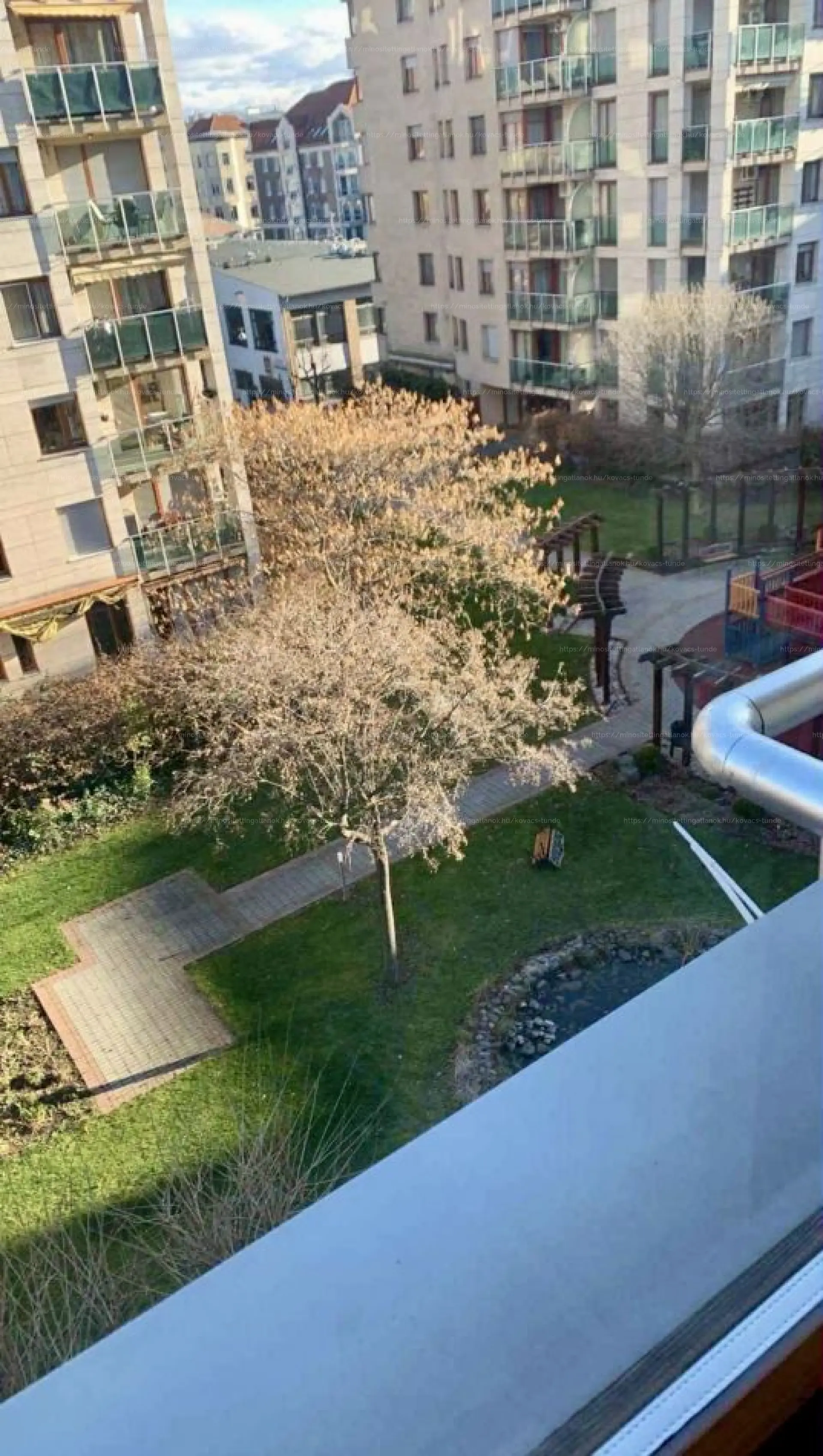 A lakás belső kertre néz, így a környék nyüzsgése helyett csendes környezetet kínál.