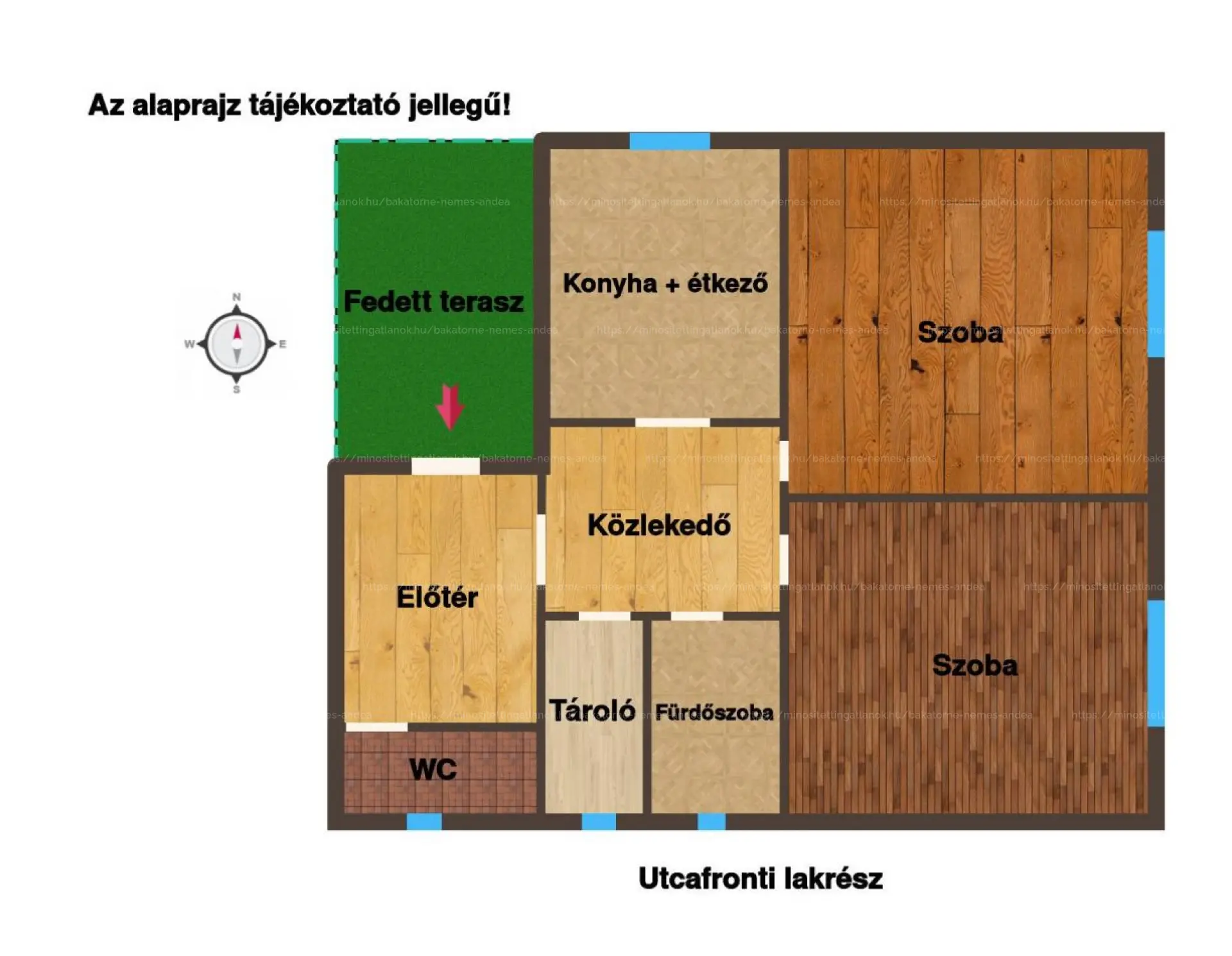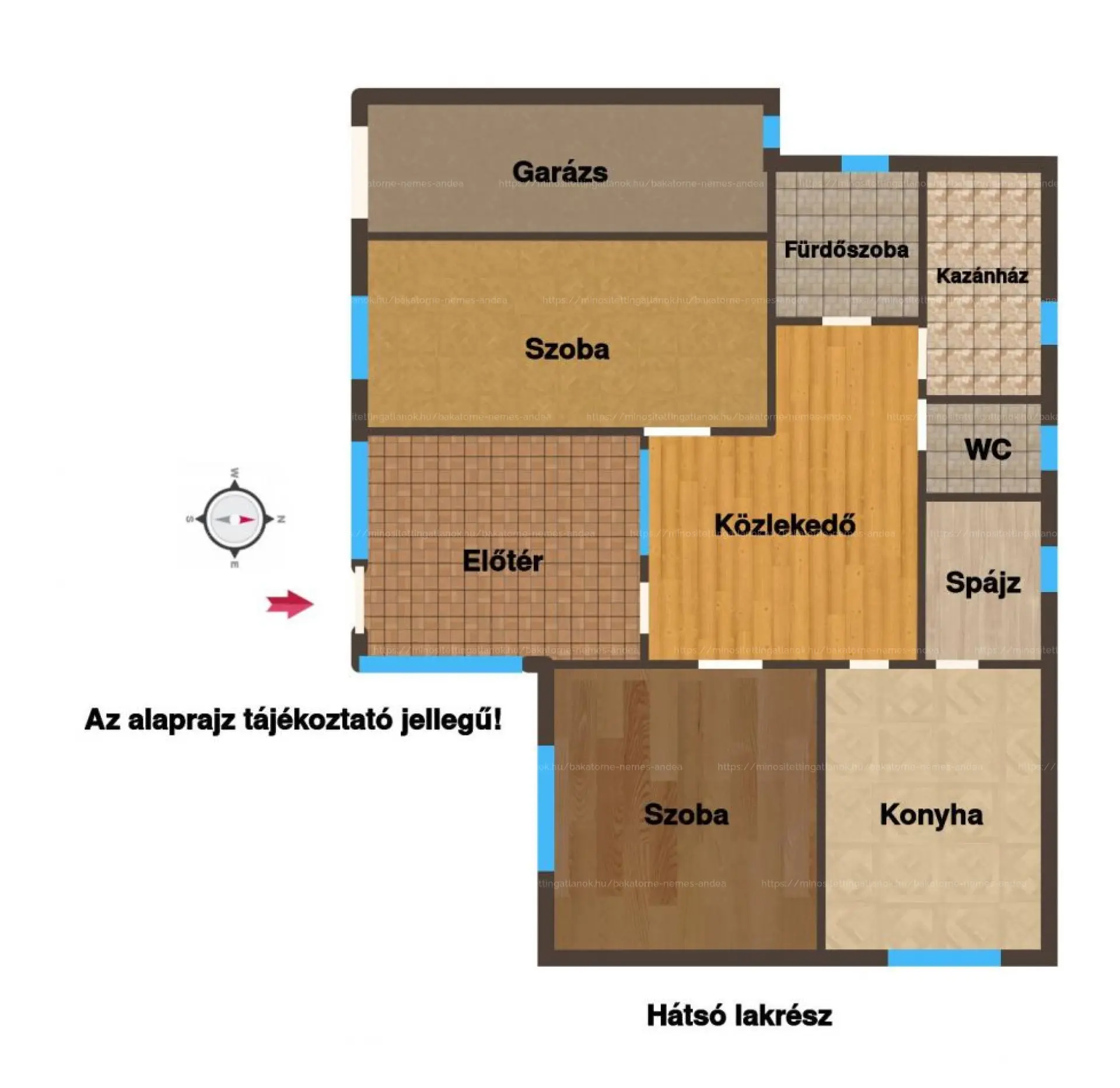 - 71 m2 alapterület, amiben megtalálható 2 nagy szoba, konyha, fürdőszoba külön WC helyiséggel, spájz, előszoba