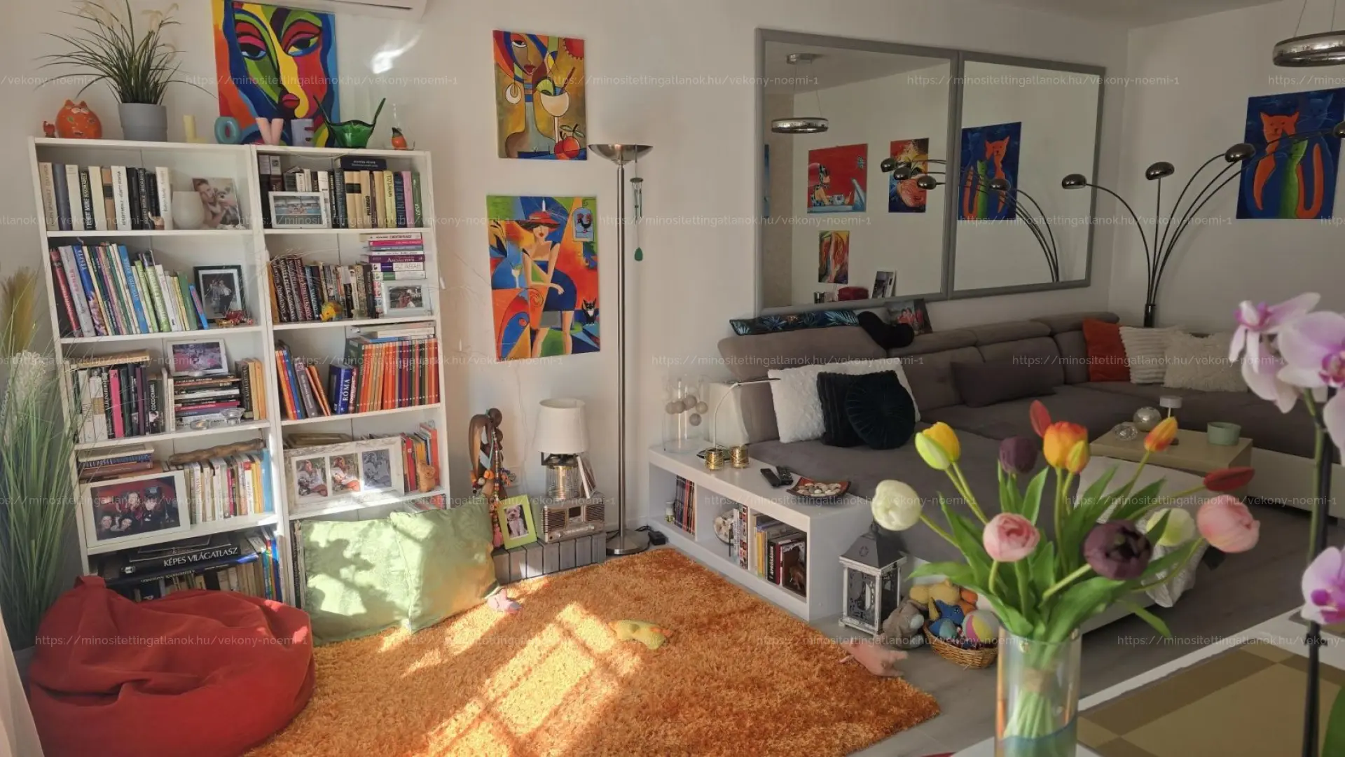 Eladásra került egy teljesen felújított, 6. emeleti, napfényes és rendkívül csendes, kertre néző amerikai konyhás nappali és két hálószobás otthon, 18 nm-es terasszal (loggia, mely beépíthető).