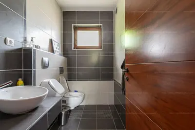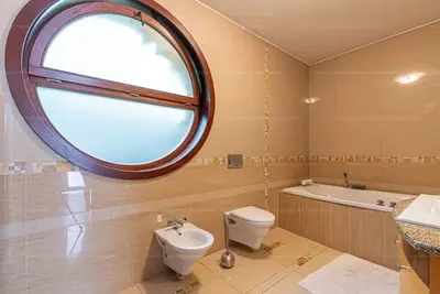 A gránit padló, a hideg- és meleg burkolatok, szerelvények és belső nyílászárók mind magas minőségűek, kiváló állapotúak.