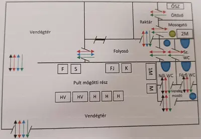 Az épületet belső riasztórendszer és külső-belső kamerarendszer védi.