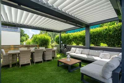 Nyílászárók: 3 rétegű hőszigetelt alumínium ablakok, pliszé szúnyogháló, távvezérlésű alumínium redőnyök