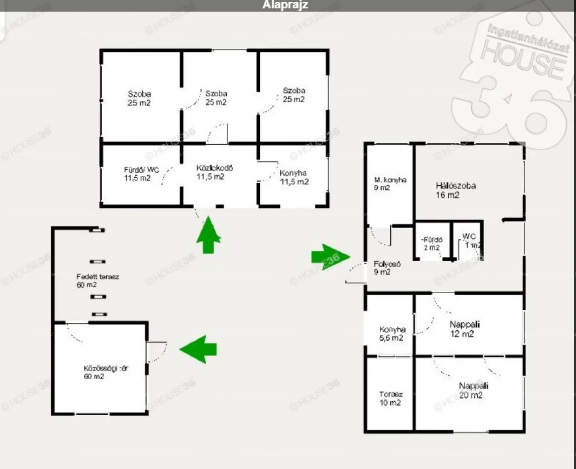 Két ház, 135 m2 és 90 m2, plusz egy hűtött- fűtött közösségi tér