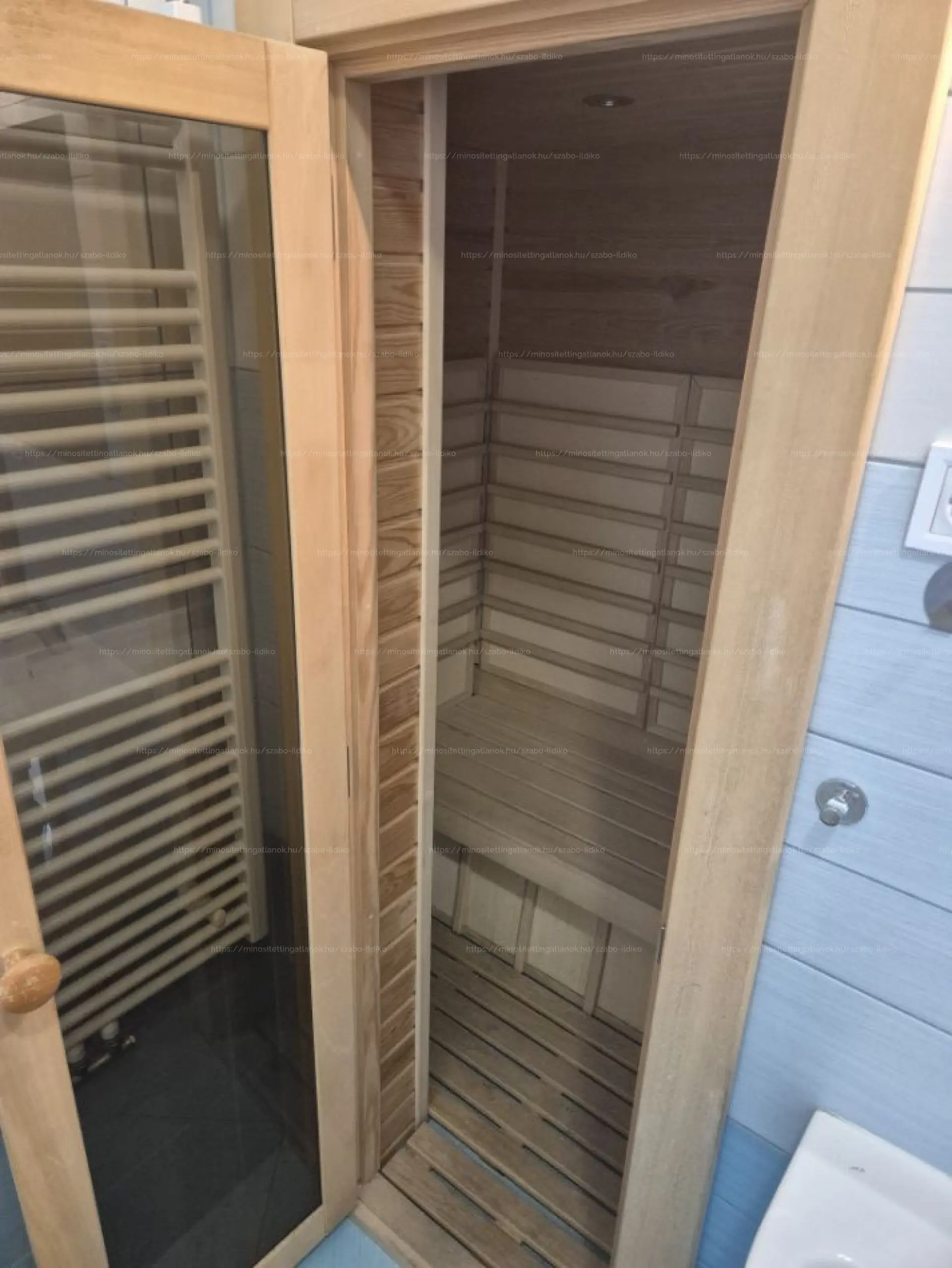 Eladóvá vált a Cordia Thermal lakóparkban egy 60 m2 alapterületű amerikai konyhás nappali + két szobás, dupla komfortos, termál vízzel, 40 m2 terasszal körbe ölelt saját szaunával felszerelt társasházi lakás. Az amerikai konyhás nappali 20 m2 beépített, gépesített konyhabútorral. A szobák nagy panoráma ablakosak, külön nyílnak, mindegyik szobából közvetlen kijárattal a teraszra. A 10,5 m2 alapterületű szobából nyílik a zuhanyzóval, mosdóval felszerelt ablakos fürdőszoba. A kisebbik szobával szemben helyezkedik el a mosdóval, káddal, toalettel, szaunával és termál vizes csappal felszerelt fürdőszoba. A lakásban külön toalett is kapott helyet. A fűtés és a meleg víz házközponti egyedi mérőkkel.