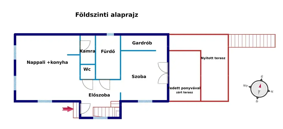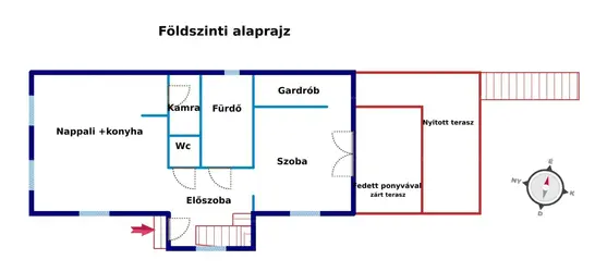 – 30 m²-es terasz, részben fedett, ponyvával körbezárt