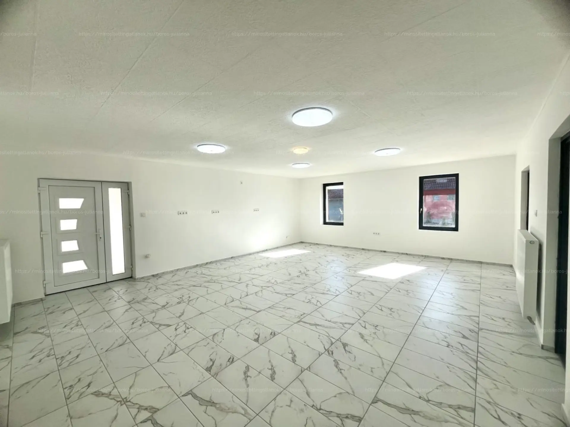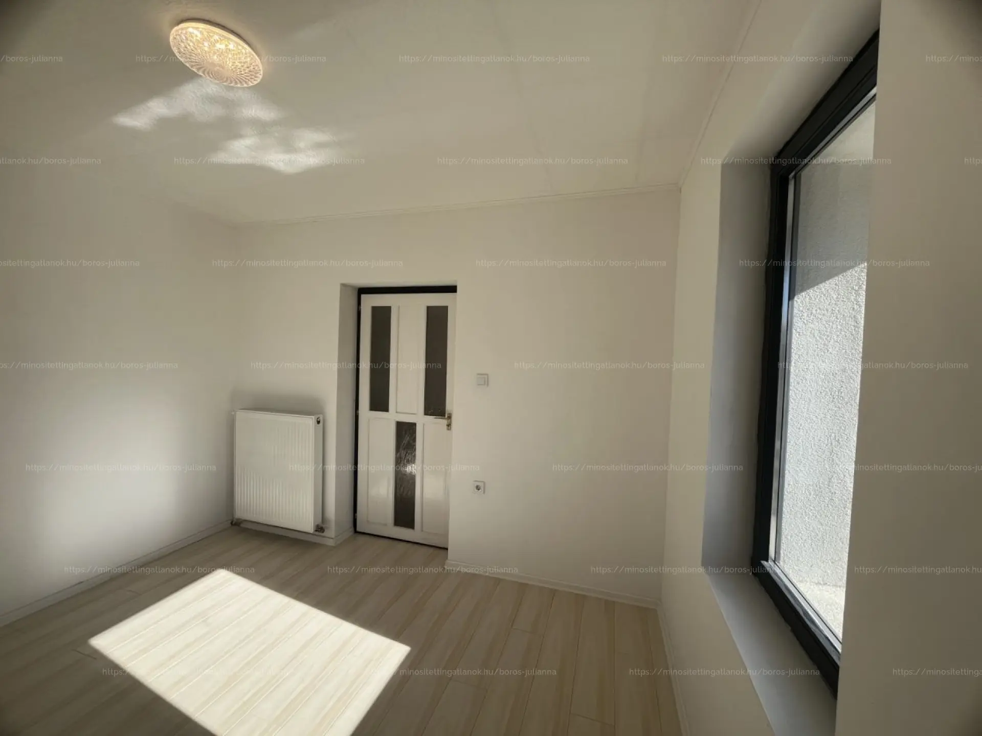 A nyílászárók minőségi anyagokból készültek: bejárati ajtó műanyag, belső ajtók fa, ablakok hőszigetelt fa kivitelűek.