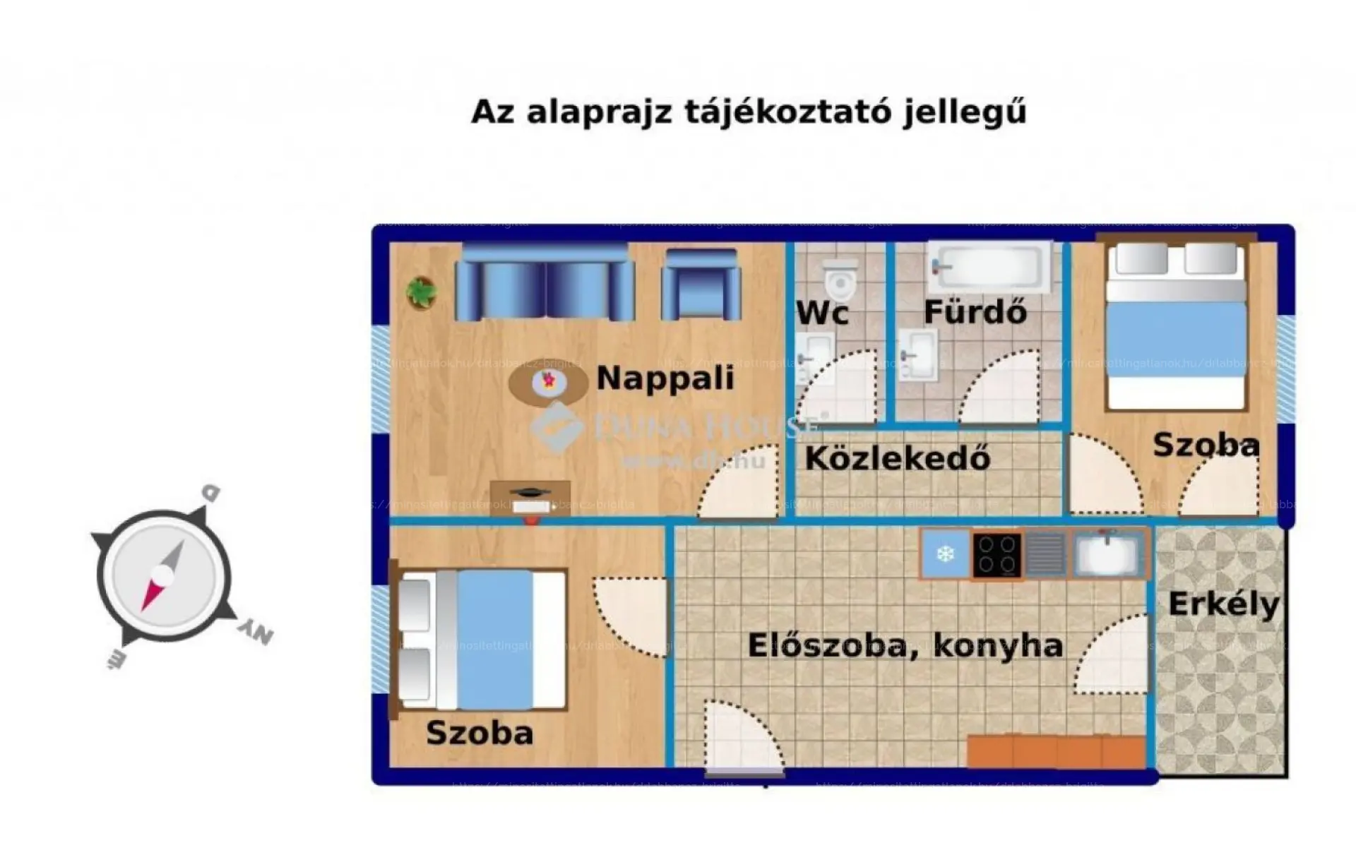 - A szobák külön nyílnak, mindegyik laminált padlóval burkolt.