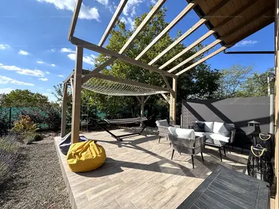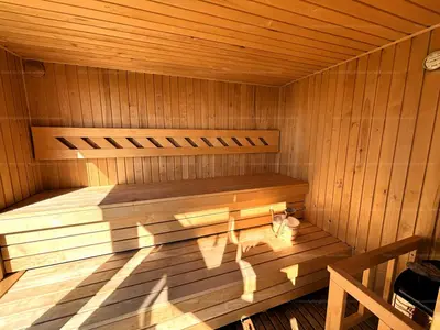 - KÜLÖNÁLLÓ WELLNESS ÉPÜLET szaunával, dézsával, kinti zuhanyzóval, FEDDETT PIHENŐRÉSSZEL és hangulatos esti világítással.