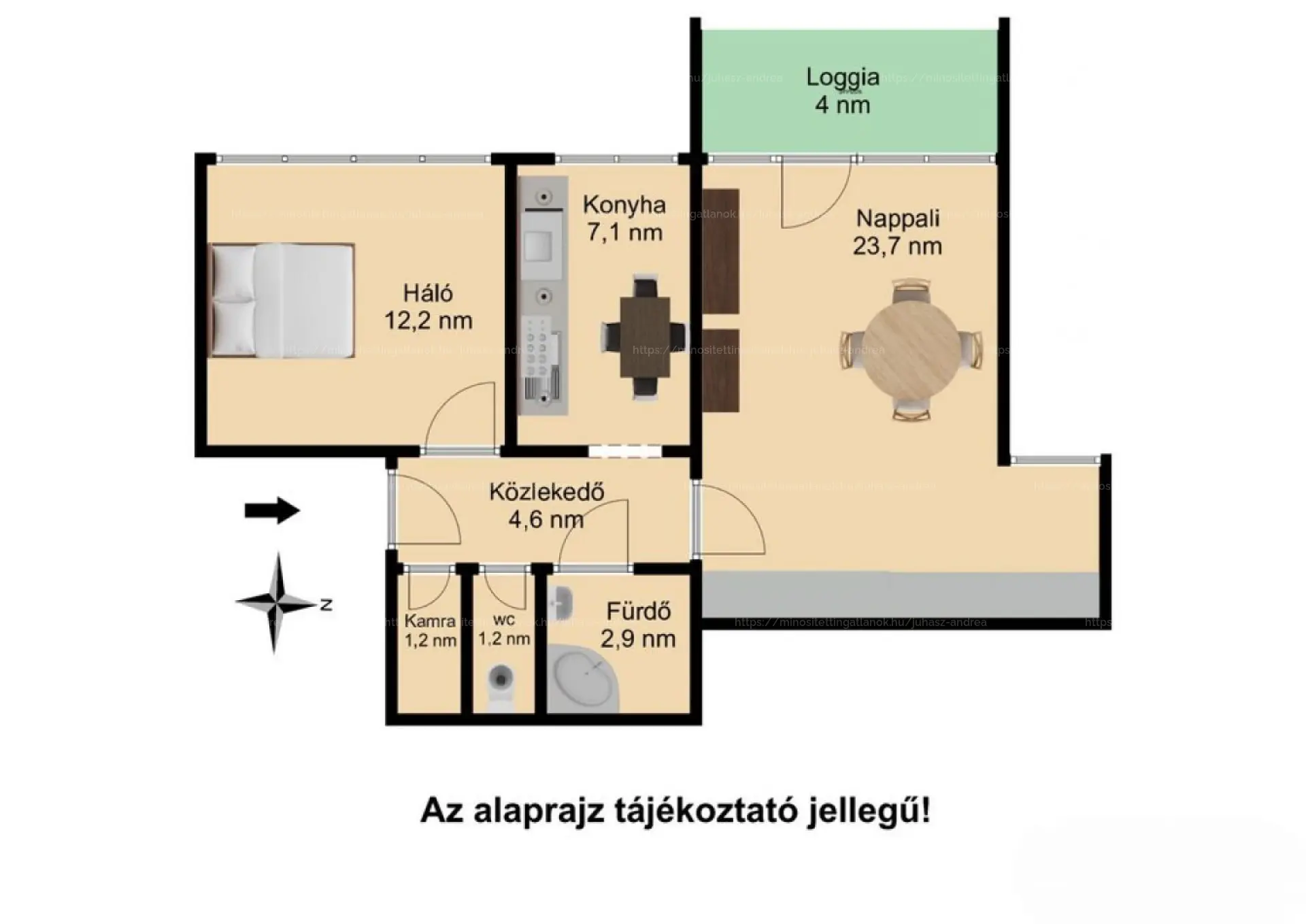 A lakás minden helyisége nyugati tájolású, így egész nap világos, meleg hangulatú.