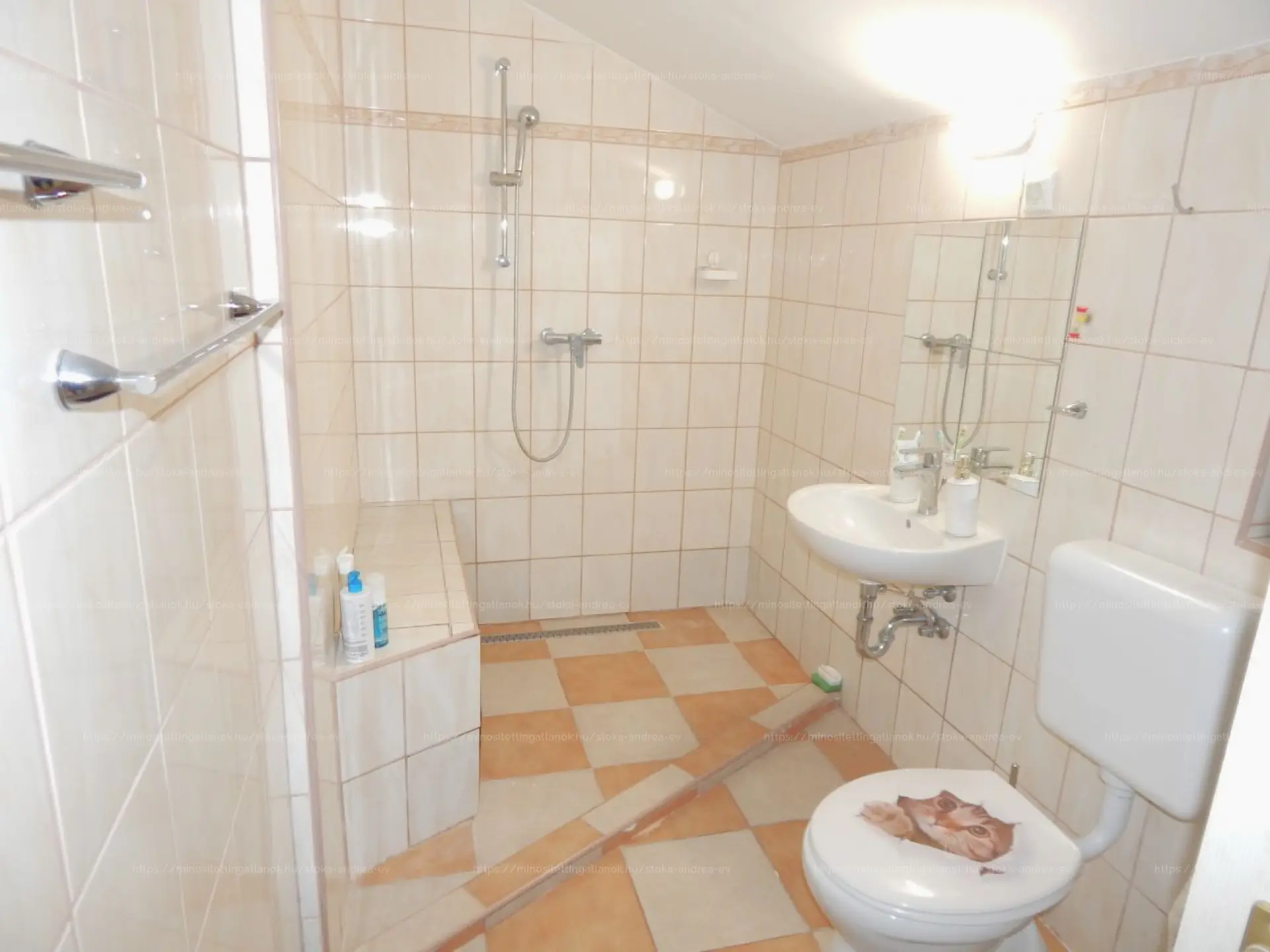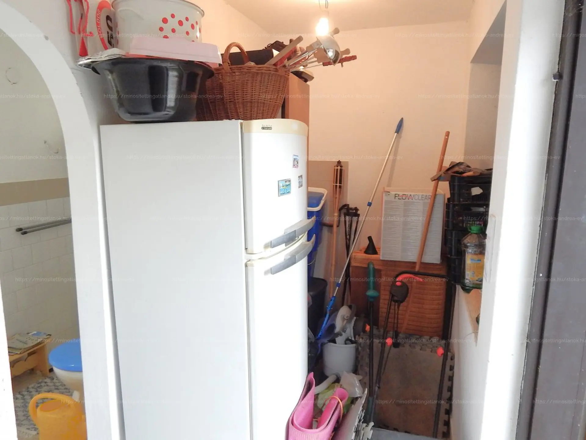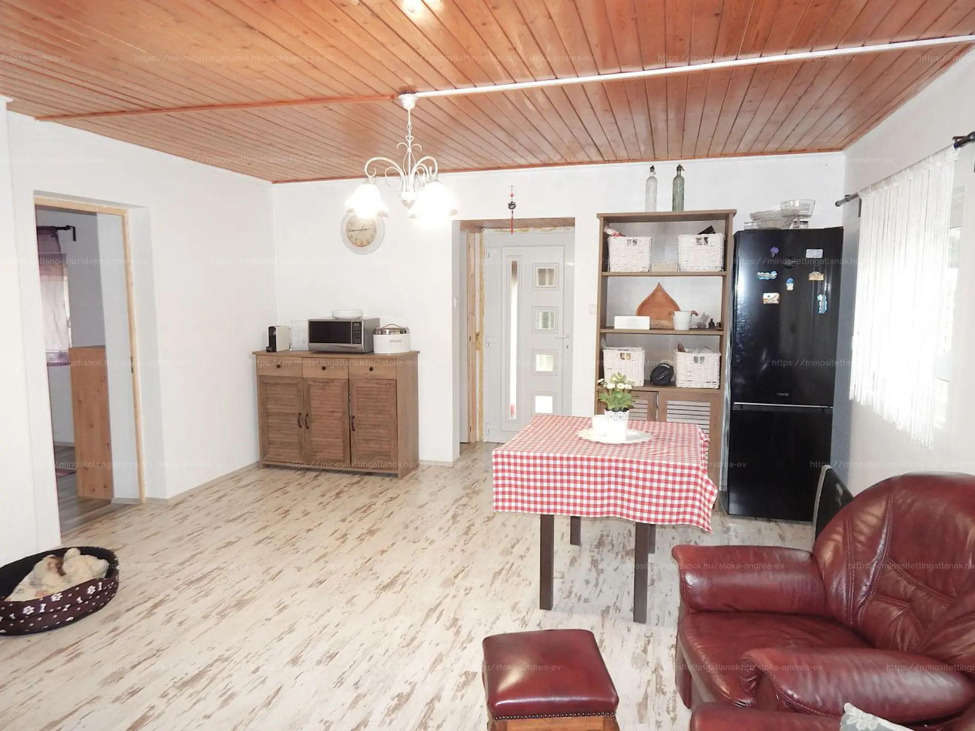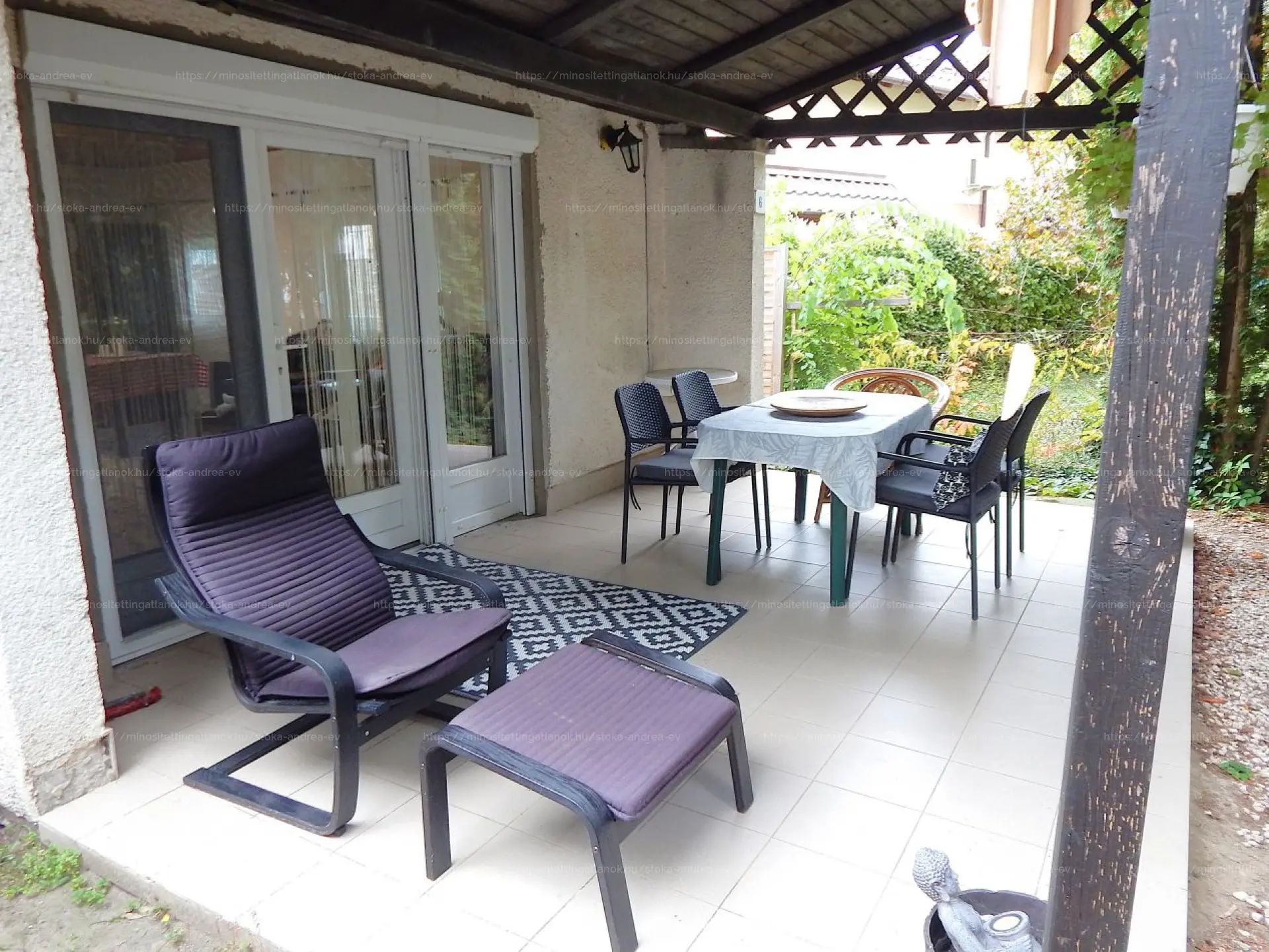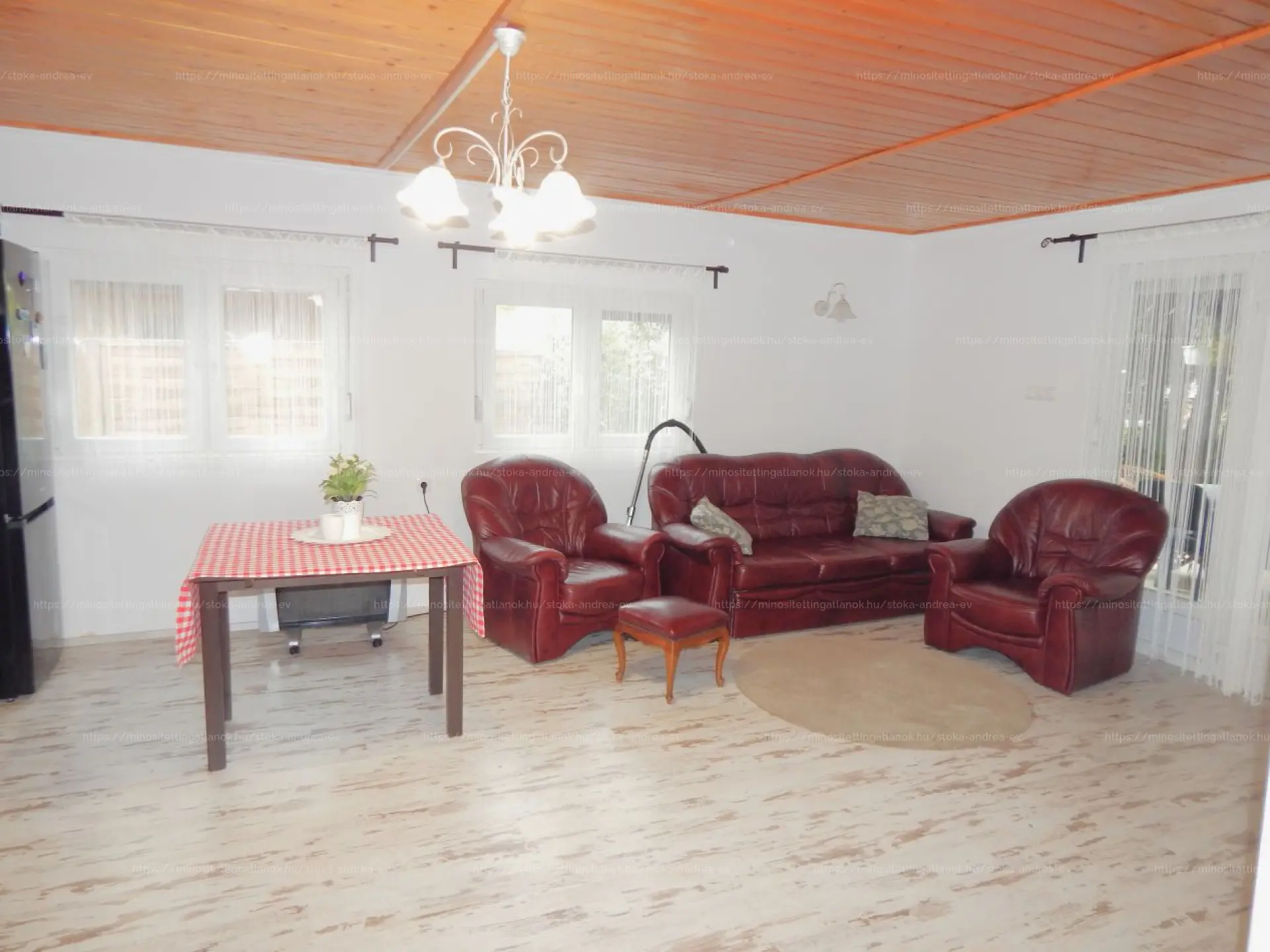A főépületben két kényelmes szoba, egy tágas nappali, fürdőszoba és egy kis konyha lett kialakítva. Az épület téglából épült a 70-es években, amelyet 8 éve belülről teljeskörűen felújítottak. Megújult a víz-, és elektromos hálózat, új belső burkolatok, nyílászárók lettek beépítve. A ház előtti fedett teraszon étkezhetünk a nap bármely szakában, hiszen kellemesen hűvös a kertet árnyaló nagy fáknak köszönhetően