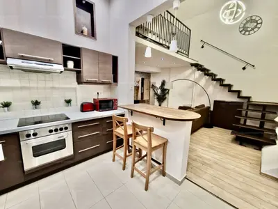 Eladó egy felújított, hangulatos, állógalériás stúdió lakás a József körúton, a Rákóczi tér és a Blaha Lujza tér között