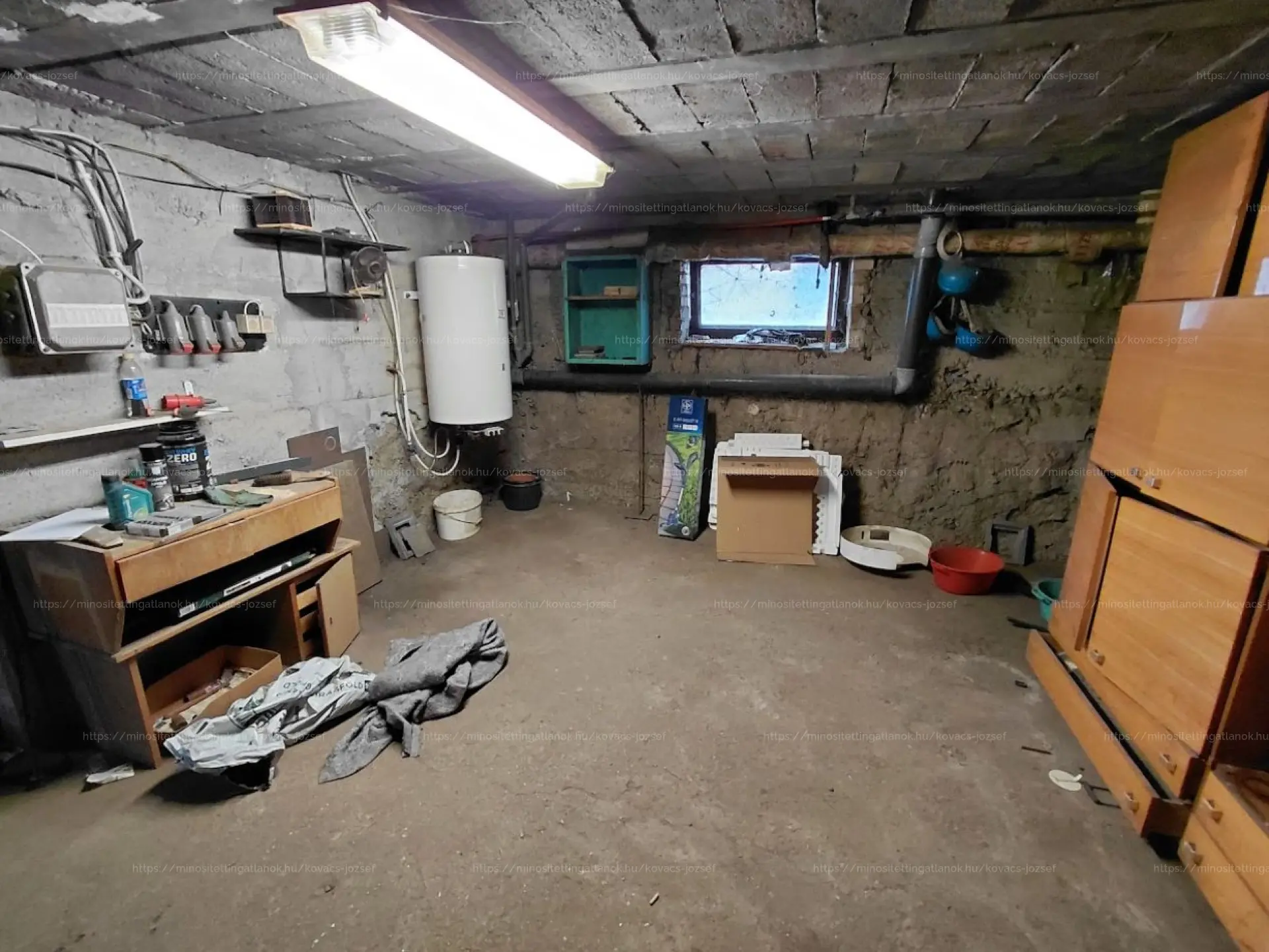 60 m2-es pince van az ingatlan alatt, ahol meg lehet oldani a munkálatokat az alap javításához.