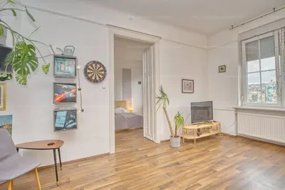 A lakás az épület zárószintjén helyezkedik el, hasznos alapterülete 75 m2.