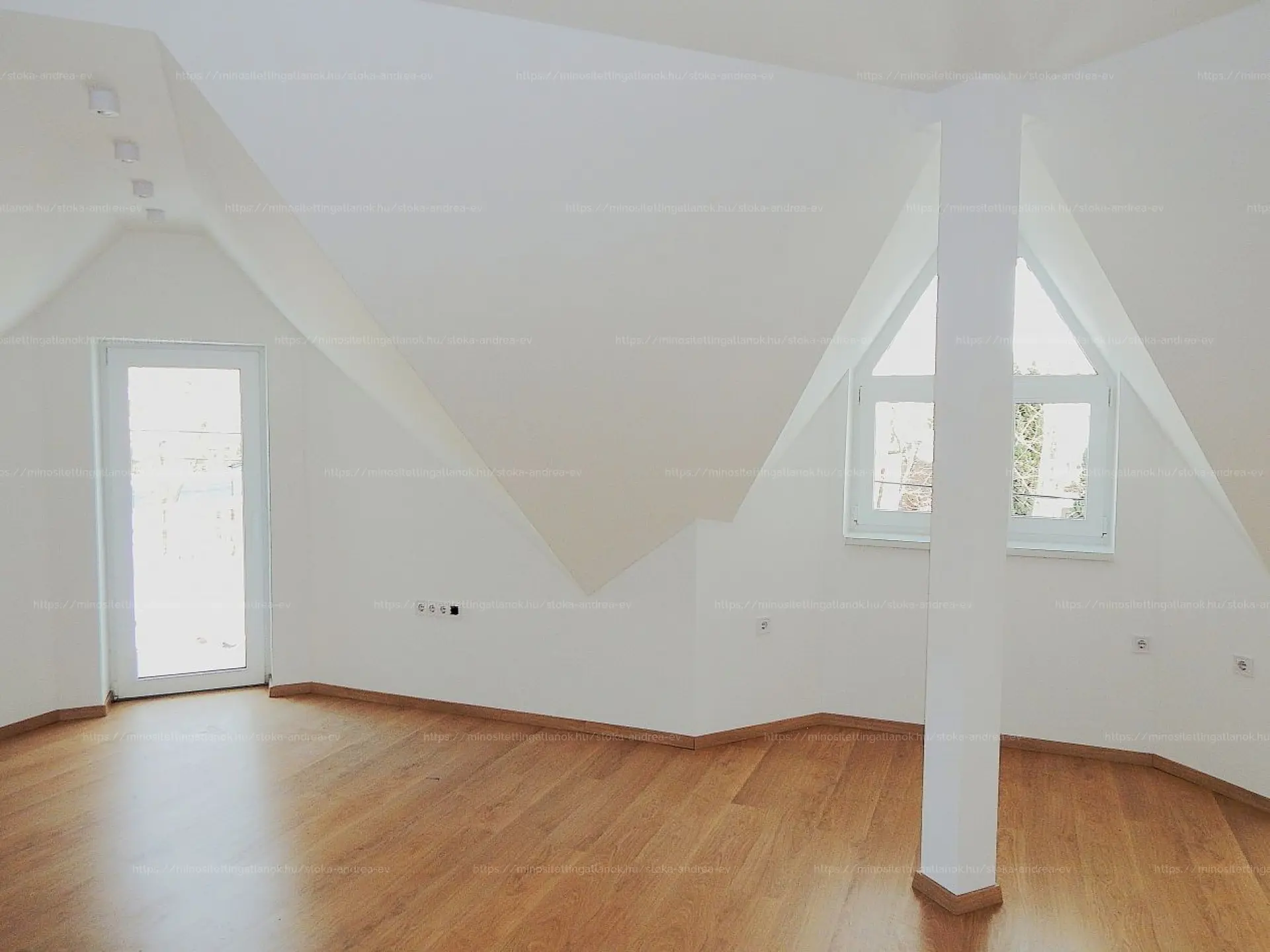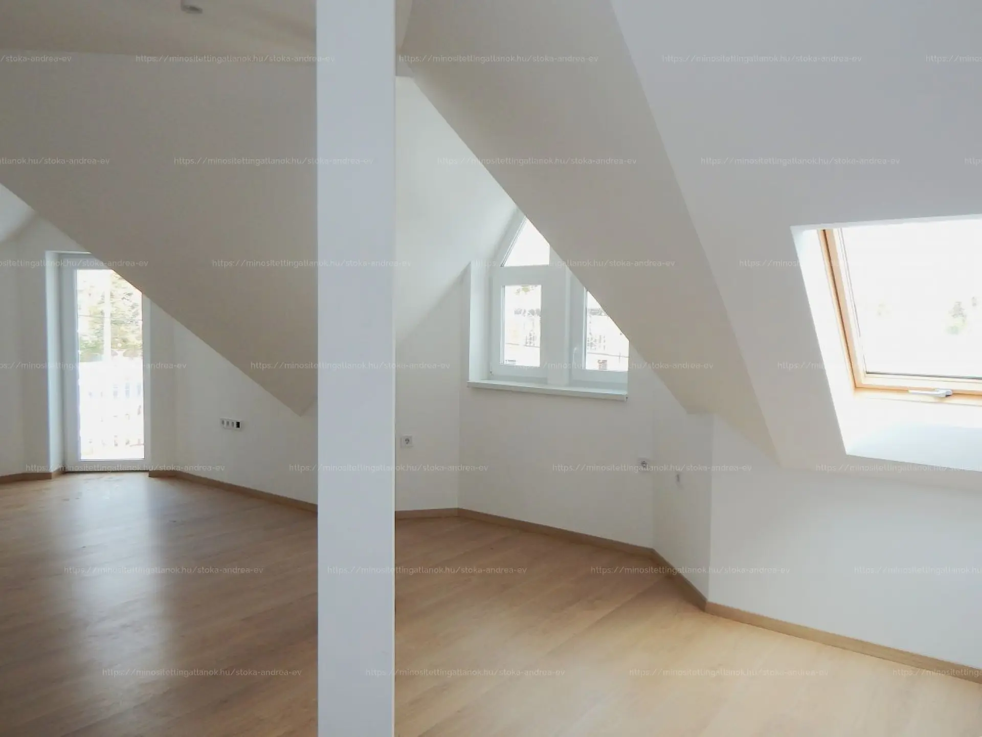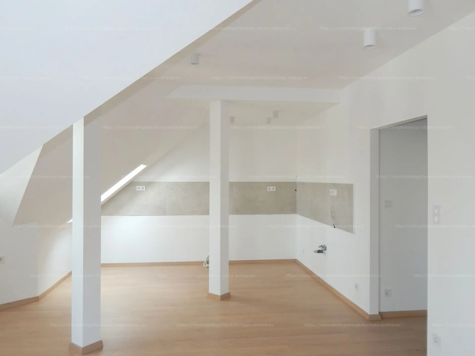 A nettó 50,99 m² (hasznos 47,39 m²) alapterületű lakás nappali-amerikai konyha, 1 hálószoba, fürdő-toalett, közlekedő kialakítású, a nappaliból kis erkélykapcsolat is van. A lakáshoz sok tárolási lehetőség adott, belső lépcsőházából mindössze két lakás nyílik, így a plusz rendelkezésre álló teret praktikusan ki lehet használni. Izgalmas téralakítása egy már meglévő tetőtéri lakás átépítésének köszönhető, két fő részére kényelmesen élhető, akár állandó otthonként vagy nyaralónak is kiváló választás.