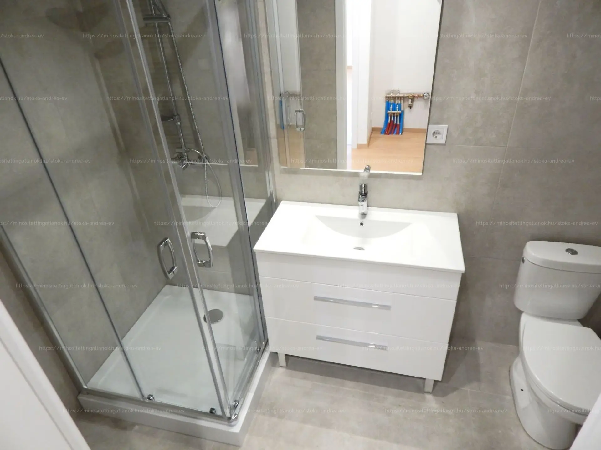 A lakás modern stílusú, burkolatai és a fürdőszoba kialakítása is letisztult, igényes forma és színvilágú. A lakás átépítése 2025 őszén fejeződött be, korszerű 3 rétegű nyílászárókat, teljeskörű víz és elektromos hálózatcserét, burkolatokat és új fürdőszobát alakítottak ki. 32 A elektromos áram, új Ariston villanybojler, a fürdőben elektromos törölköző szárítós radiátor lett beépítve.