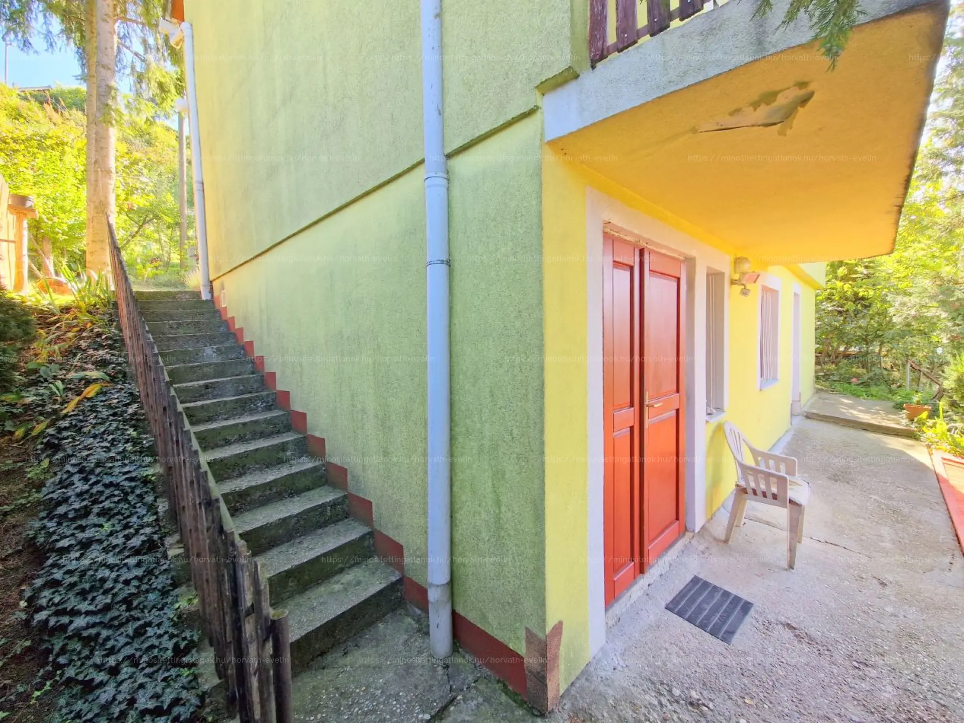 - nyílászárói a legalsó szinten fa, a felső szinteken műanyag nyílászárók, redőnnyel és szúnyoghálóval felszerelve,