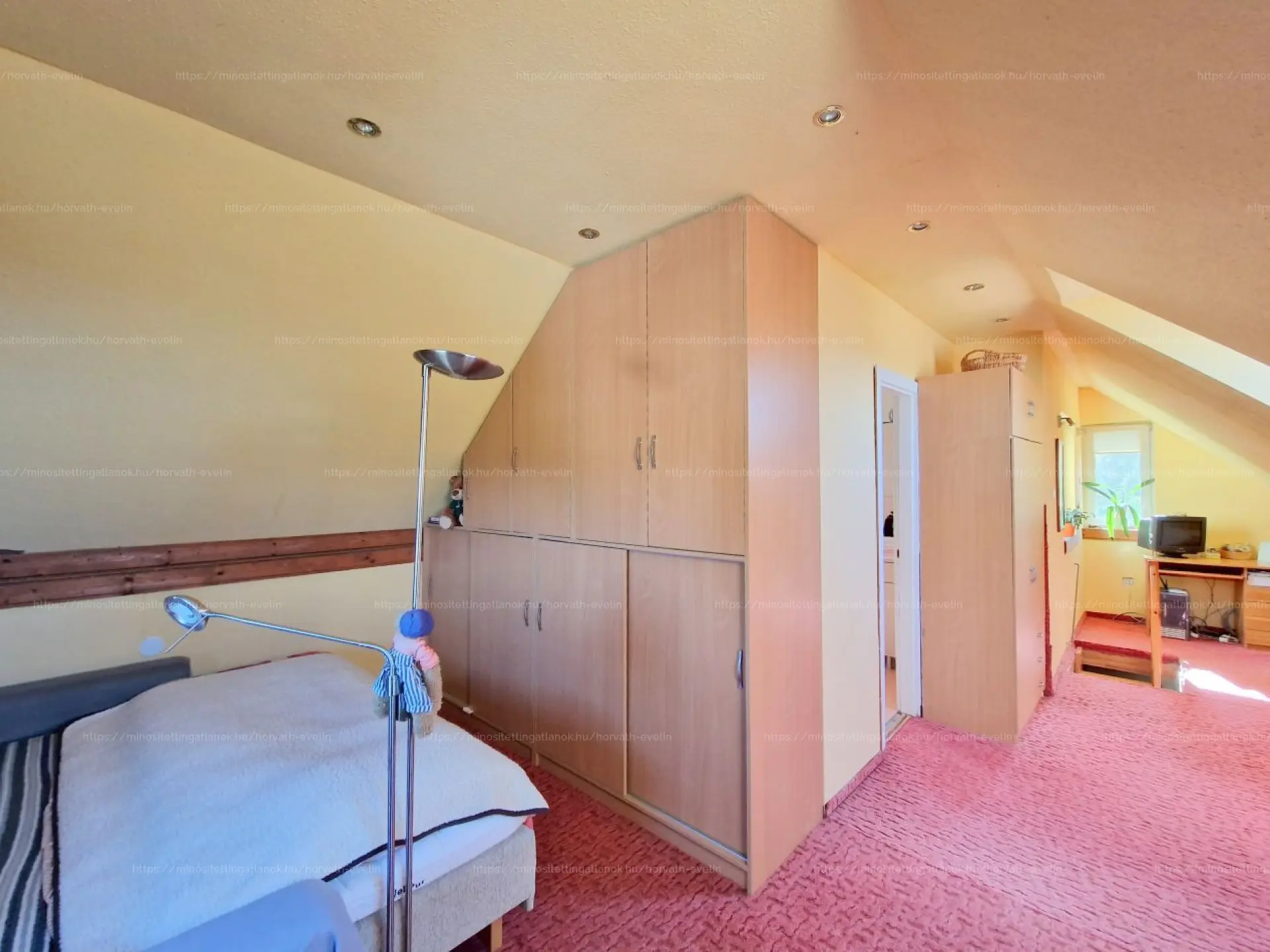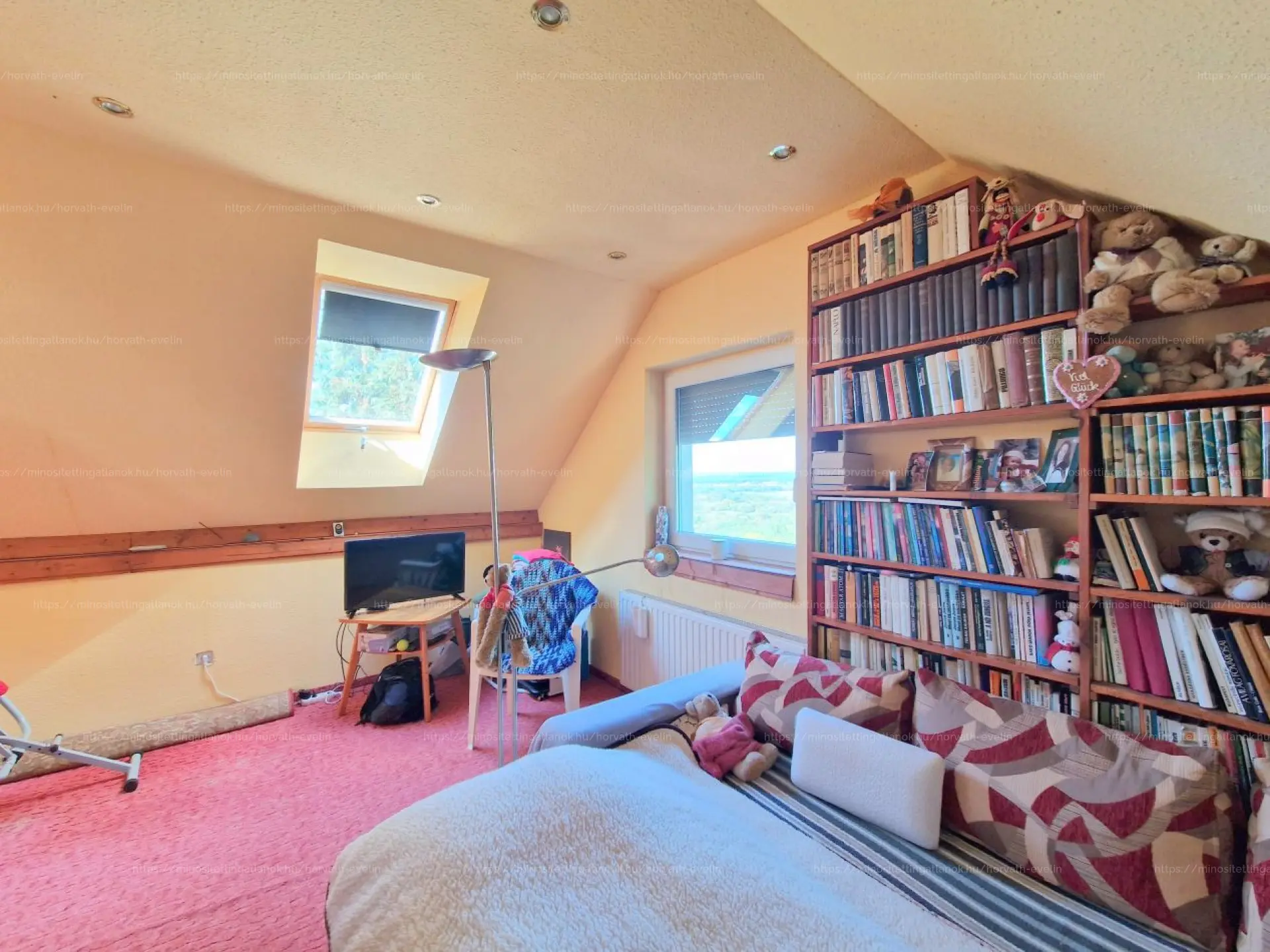 A felső szinten található egy egybefüggő folyosó - végén egy pihenősarokkal - mely ajtóval elválasztva hálóként funkcionálhat - továbbá ezen a szinten is kialakításra került egy fürdőszoba, mely fürdőkáddal és toalettel felszerelt. E szinten mindegy, hogy merre tekintünk, mesés panoráma tárul elénk.