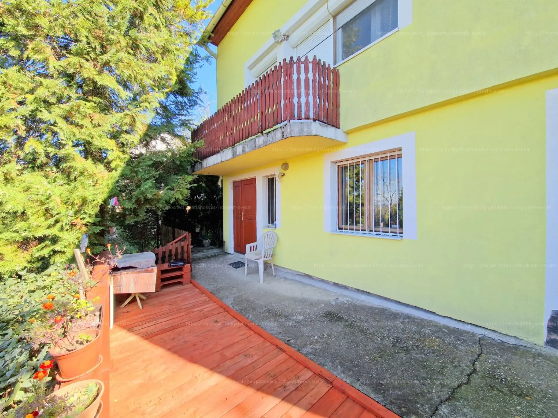 Az Otthon egy 1355 m2-es területen helyezkedik el, melyen egy különálló tároló, egy kerti kiülő, kialakított esővízgyűjtő és a rácsatlakozott kerti csap, valamint GARÁZS is található.