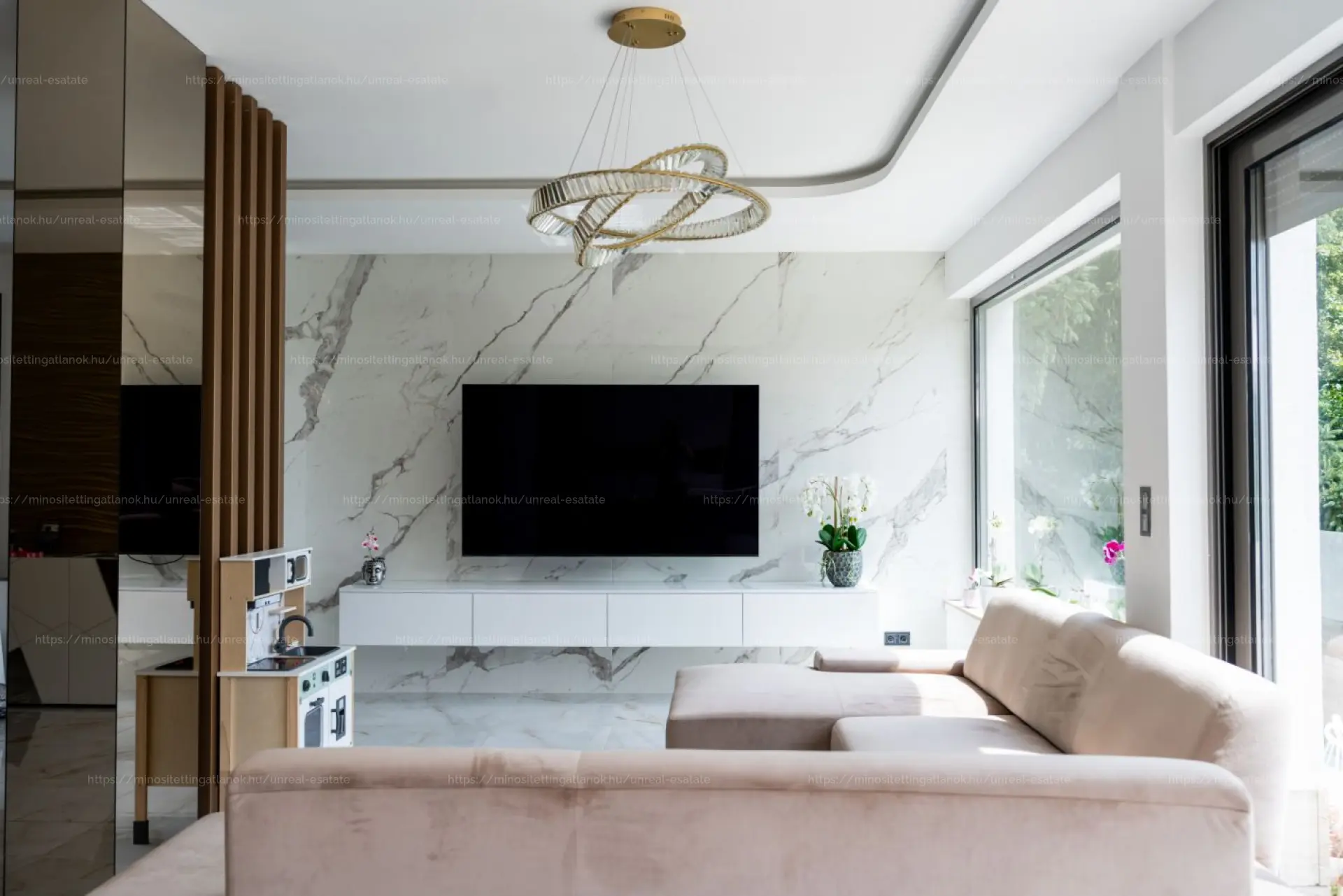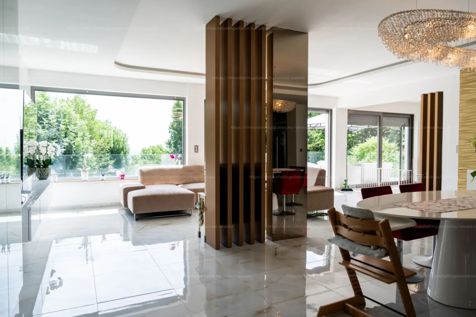 - Nappali + 4 tágas hálószoba + 2 fürdőszobával, vendég Wc-vel és tágas gardróbokkal