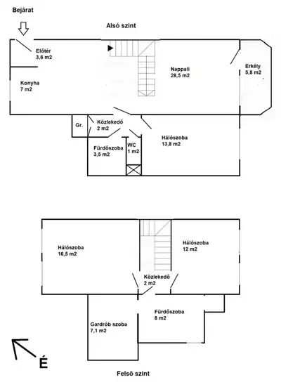 A nappaliból induló kényelmes lépcső egy új dimenzióba visz: a felső szinten két külön nyíló hálószoba, egy fürdőszoba káddal, zuhanyzóval, dupla mosdóval és WC-vel, valamint egy gardróbszoba vár. Itt mindenki megtalálja a saját kis zugát, legyen szó pihenésről, munkáról vagy elvonulásról.