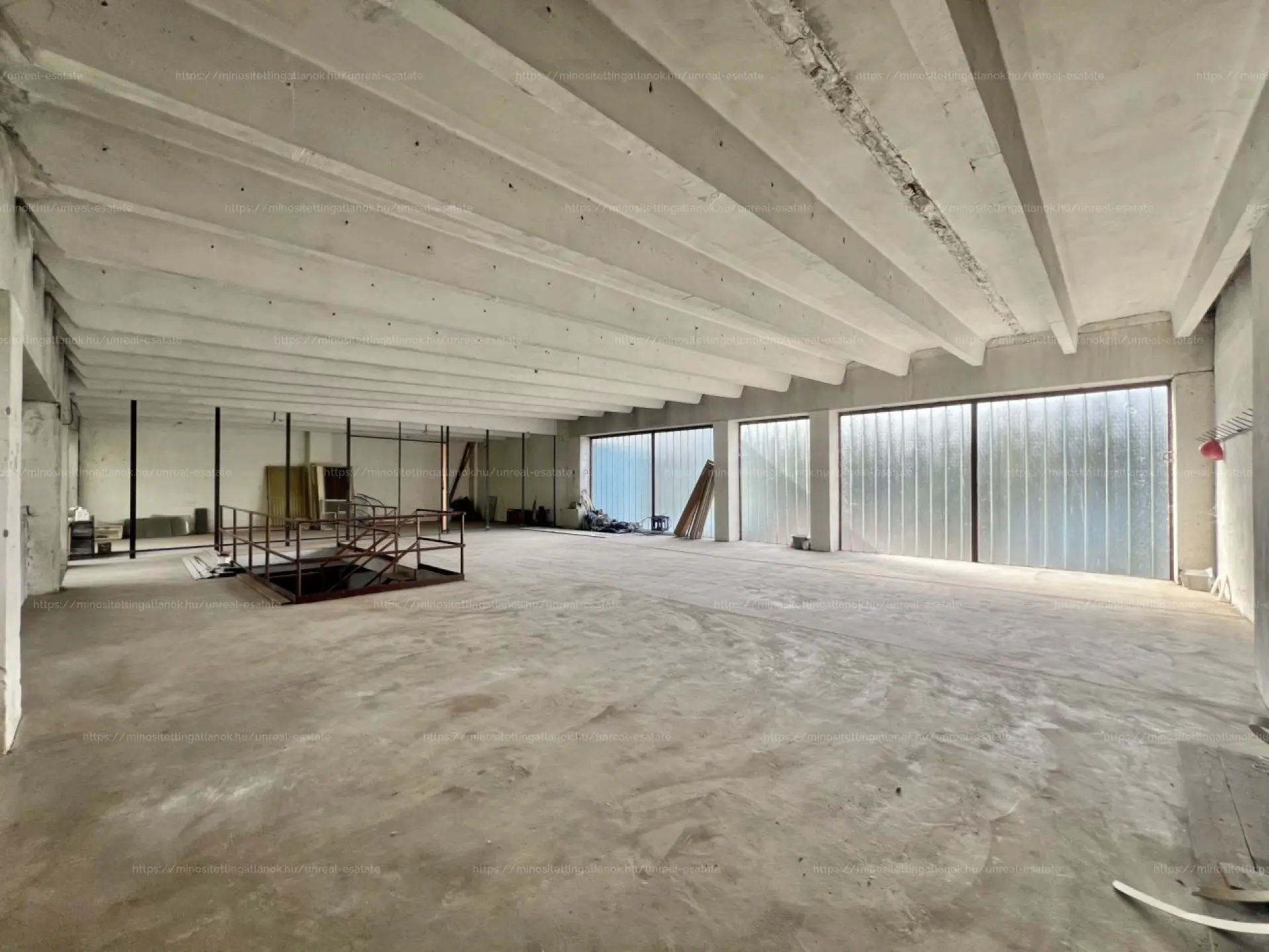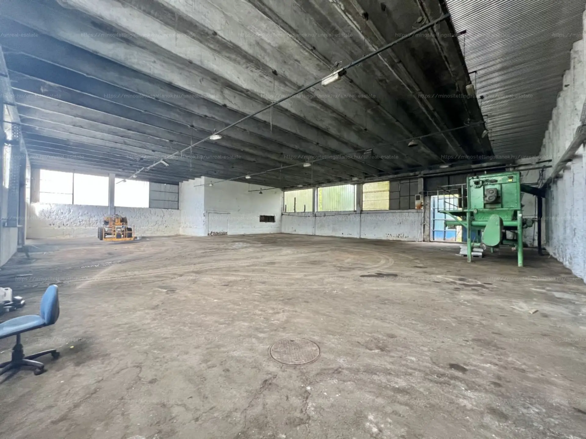 Nagy belmagasságú műhelytér, irodák, raktár rész, irattár, vizesblokkok