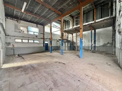 Nagy belmagasságú műhelytér, irodák, raktár rész, irattár, vizesblokkok