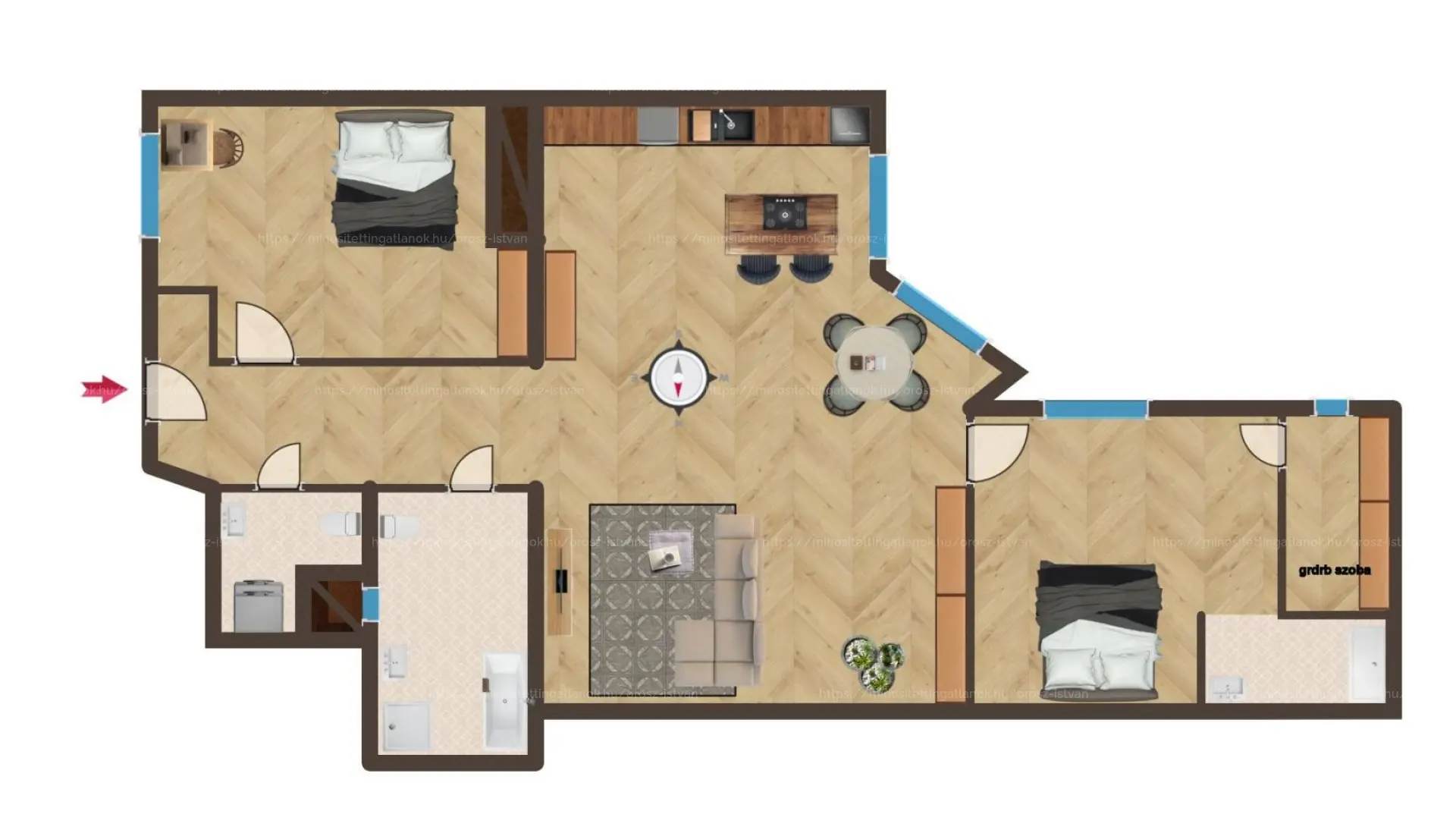 91 m², amerikai konyhás nappali + 2 hálószoba