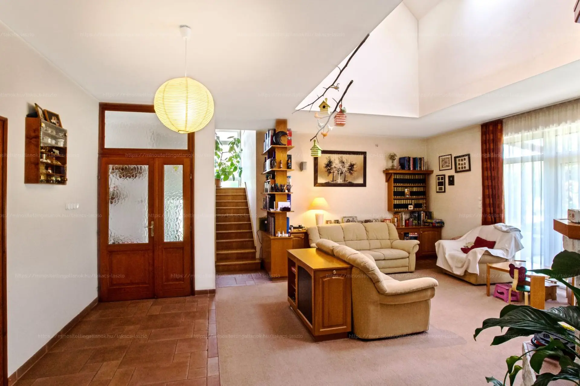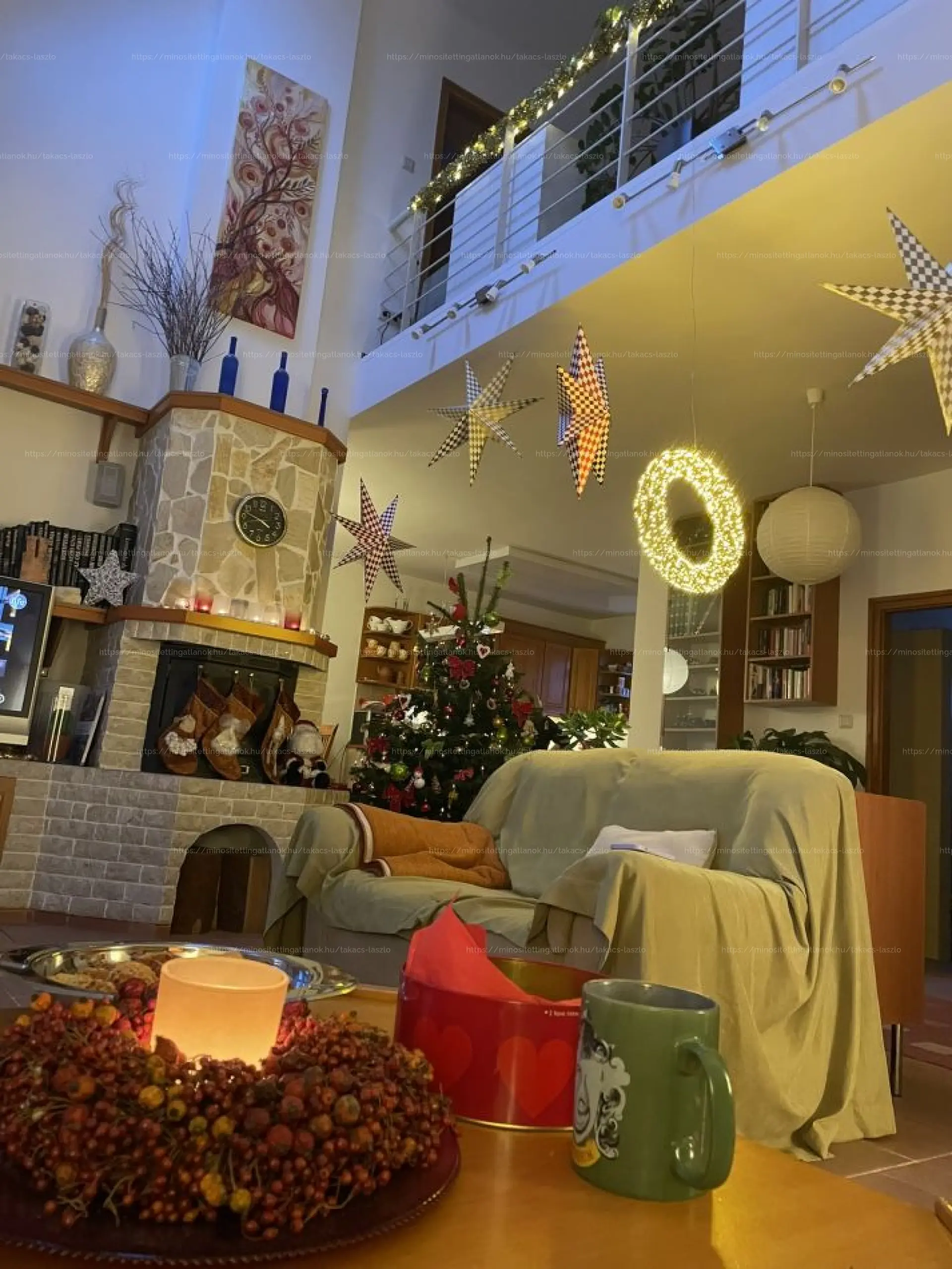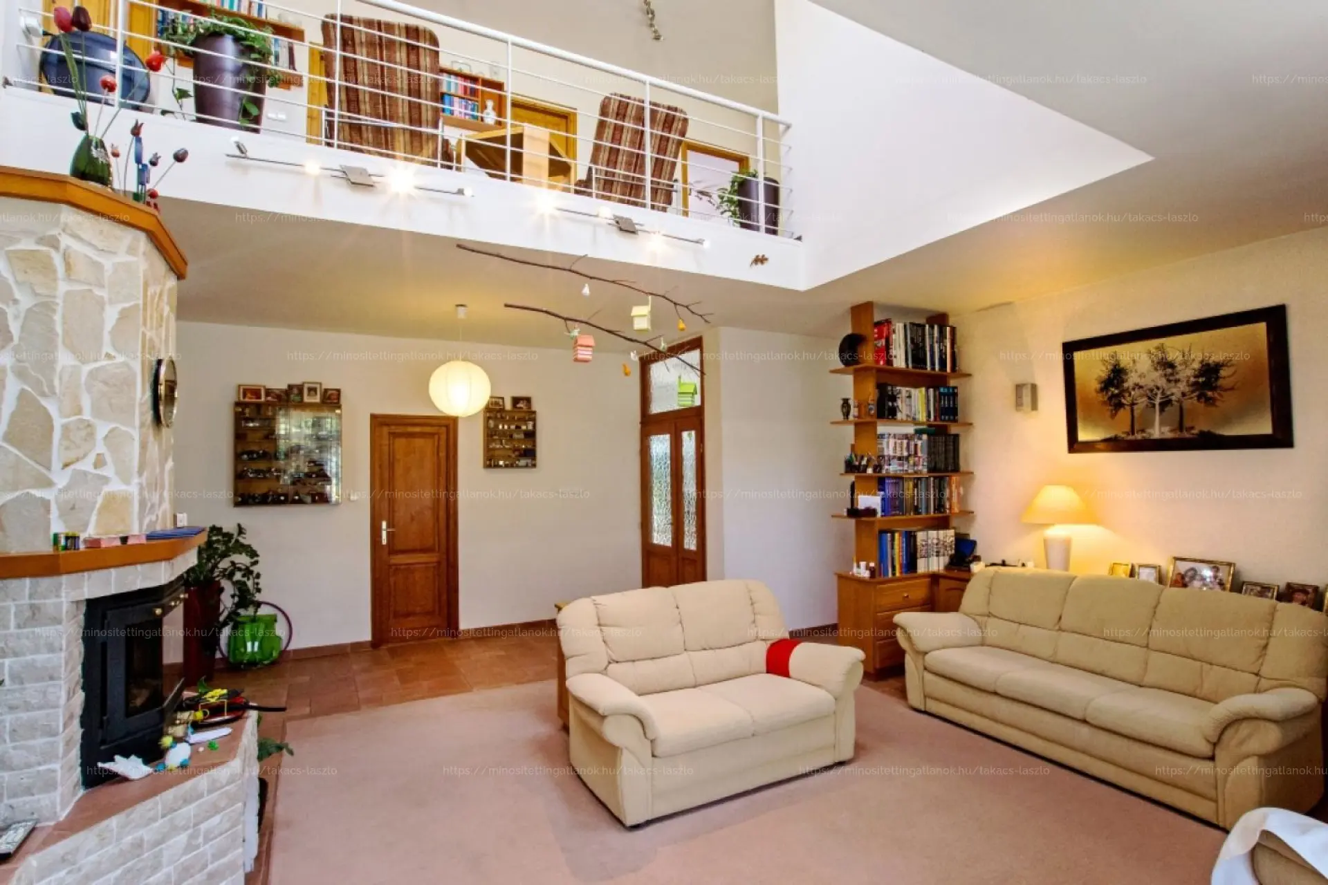 A földszinten tágas nappali vár kandallóval és klímával. Külön étkező szolgálja a kényelmes családi étkezéseket. A konyhához kamra tartozik, ami megkönnyíti a tárolást. A szinten található hálószoba saját gardróbbal és fürdővel. Három WC növeli a napi komfortot.