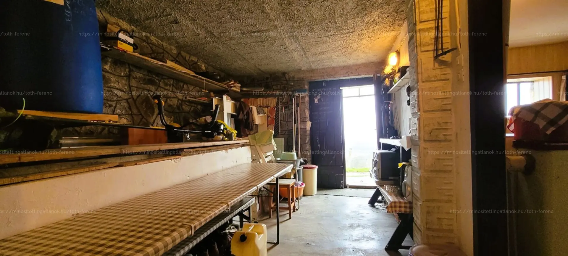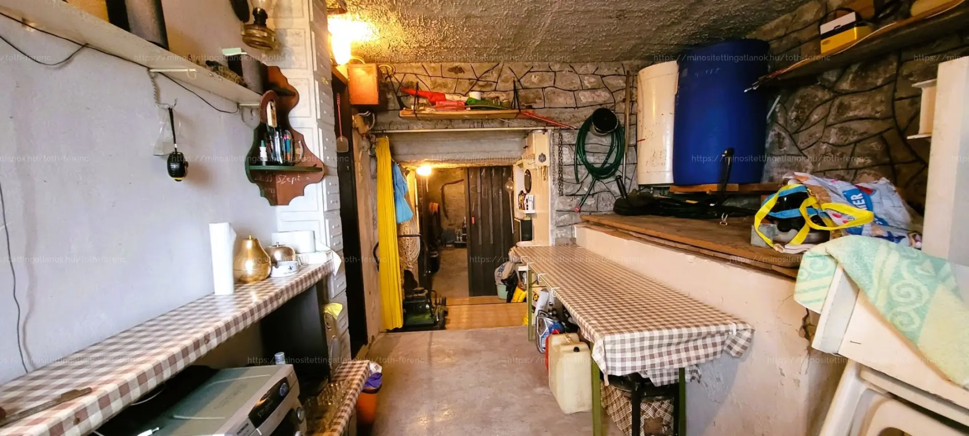 - Alsó szint: 20,4 m2-es, boltíves, jó állapotú kőpince; 19 m2-es előkészítő helyiség; 10,9 m2-es konyha. A konyha és az előkészítő közötti fal eltávolítható, így egybenyitva nagy amerikai konyhás nappali alakítható ki.
