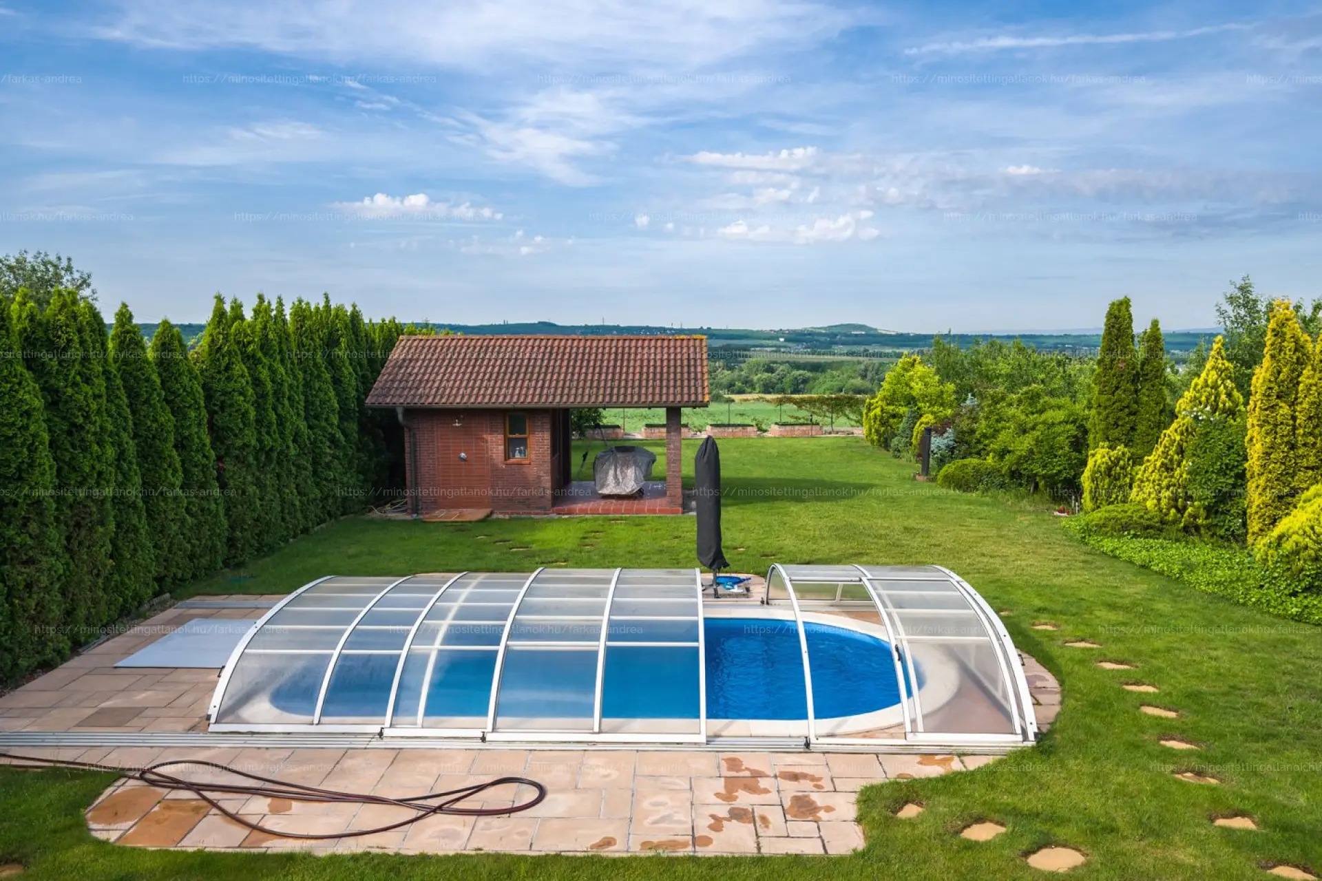 •Medence, rendezett kert