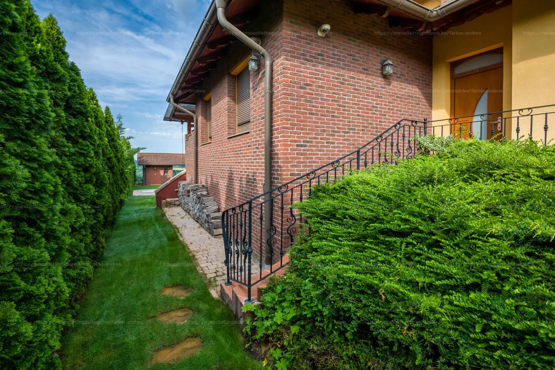 A gondozott kert valódi nyugalomsziget: épített medence biztosítja a nyári felfrissülést, a hangulatos nyári konyha ad ideális helyszínt a családi, baráti összejövetelekhez.