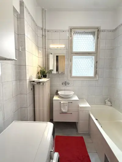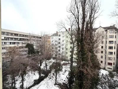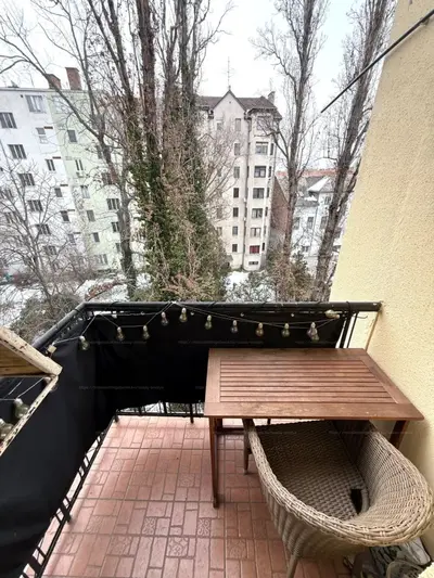 A lakás rendkívül napfényes, az erkély gyönyörű zöld belső udvarra néz.