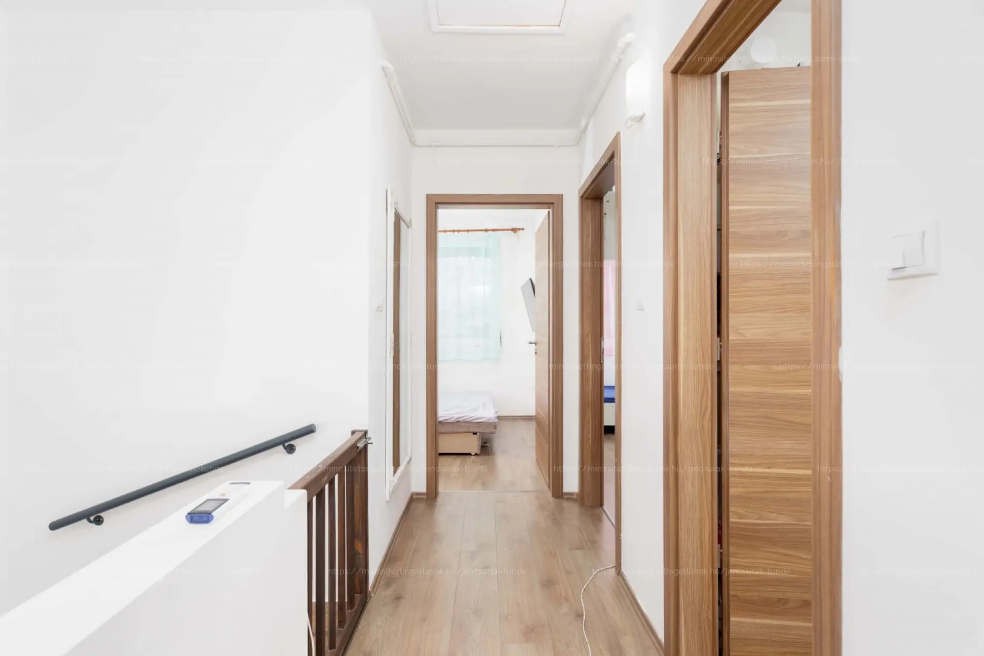 A felső szinten három kényelmes hálószoba, egy kádas fürdőszoba WC-vel biztosítja a család minden tagjának a nyugodt pihenést.