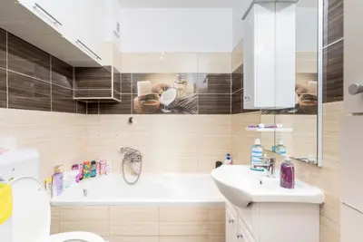 A lakás világos, modern burkolatokkal, fiatalos, barátságos hangulattal várja új lakóit.