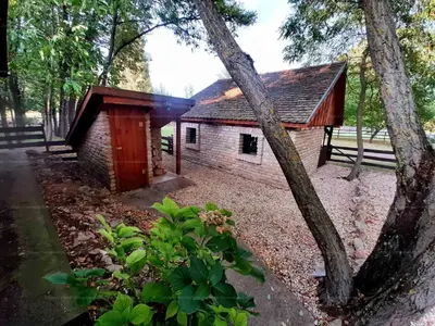 A 8000 m2-es területen gyönyörűen kialakított parkosított kert, erdei környezetben található, kb. 20 m2 kerti tóval, legelővel, telepített akácerdővel, épített kerti grill-bográcsozó hellyel rendelkezik.
