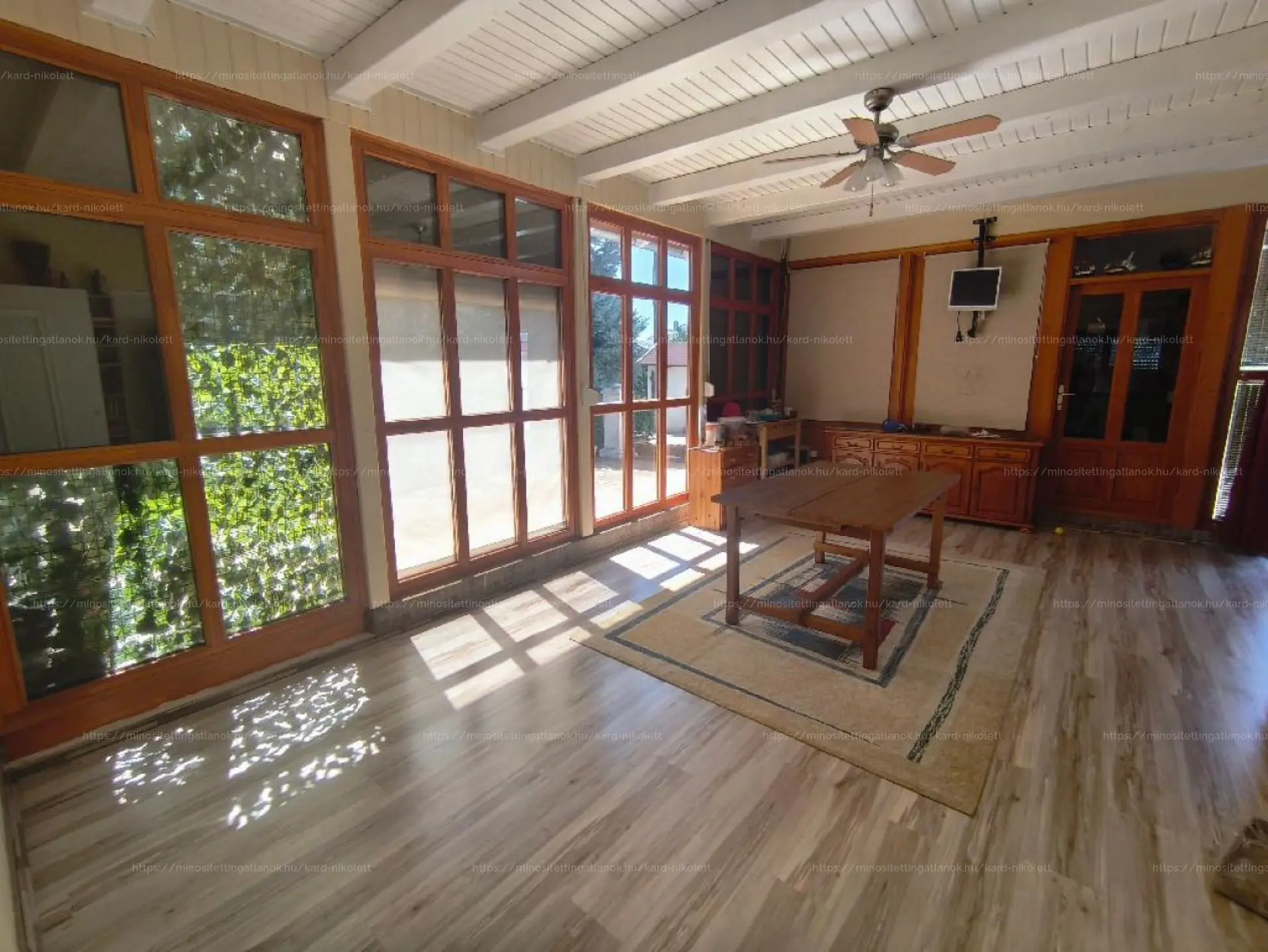 Az ingatlan egy 1167 m²-es, gondozott, térkövezett telken helyezkedik el, ahol minden adott a kényelmes és nyugodt élethez. A főépület 118,55 m²-es, amelyben két nappali, egy szoba és két félszoba, konyha, kamra, mosókonyha, kazánház, két fürdőszoba, külön WC, gardrób és jacuzzi szoba található. A telken helyet kapott továbbá egy 65 m²-es különálló ház két szobával, konyhával és fürdőszobával, valamint egy 48 m²-es garázs tárolókkal, szaunával és több autó számára beállási lehetőséggel.