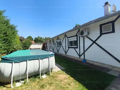 Az ingatlan egy 1167 m²-es, gondozott, térkövezett telken helyezkedik el, ahol minden adott a kényelmes és nyugodt élethez. A főépület 118,55 m²-es, amelyben két nappali, egy szoba és két félszoba, konyha, kamra, mosókonyha, kazánház, két fürdőszoba, külön WC, gardrób és jacuzzi szoba található. A telken helyet kapott továbbá egy 65 m²-es különálló ház két szobával, konyhával és fürdőszobával, valamint egy 48 m²-es garázs tárolókkal, szaunával és több autó számára beállási lehetőséggel.