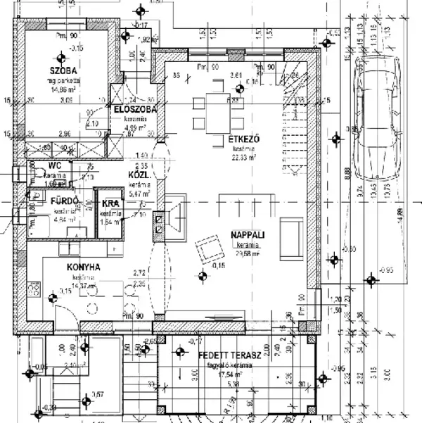 Ház: 177 m² + 40 m² terasz + 30 m² pince