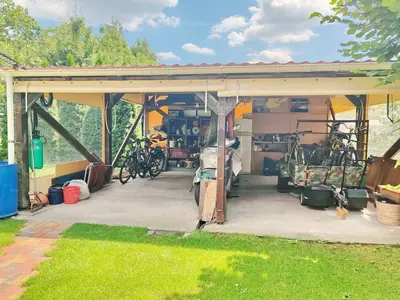 A kert hátsó részébe fedett kiülő, kikapcsolódásra alkalmas rész várja új lakóját!