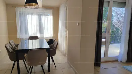 A nappali hatalmas ablakain árad be a napfény, a tágas teraszról élvezhetjük a zöld környezet látványát. Az ablakok redőnyökkel felszereltek.