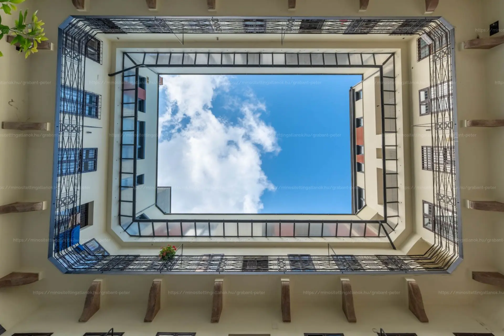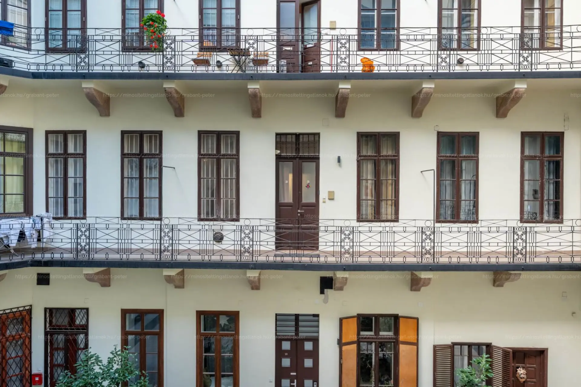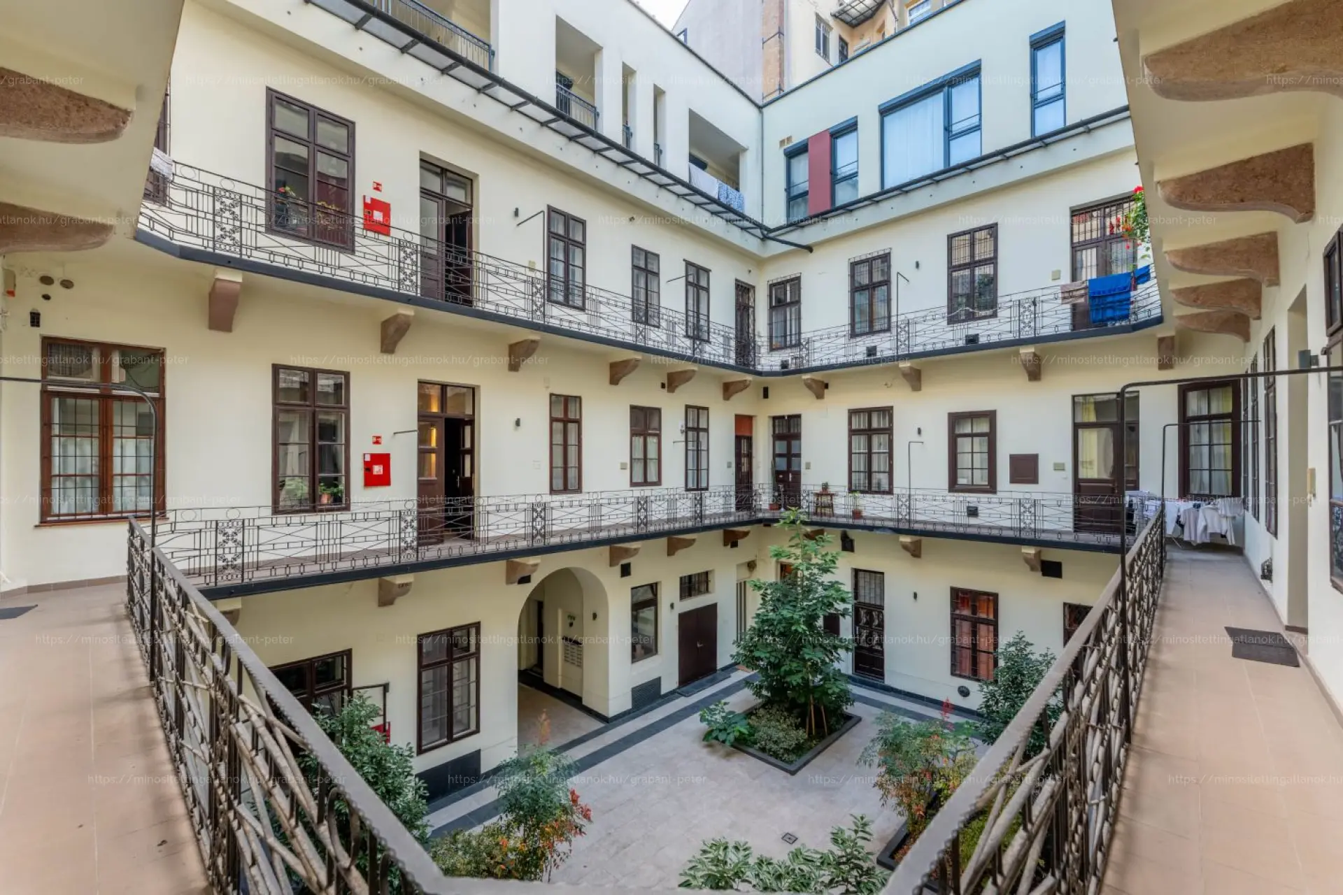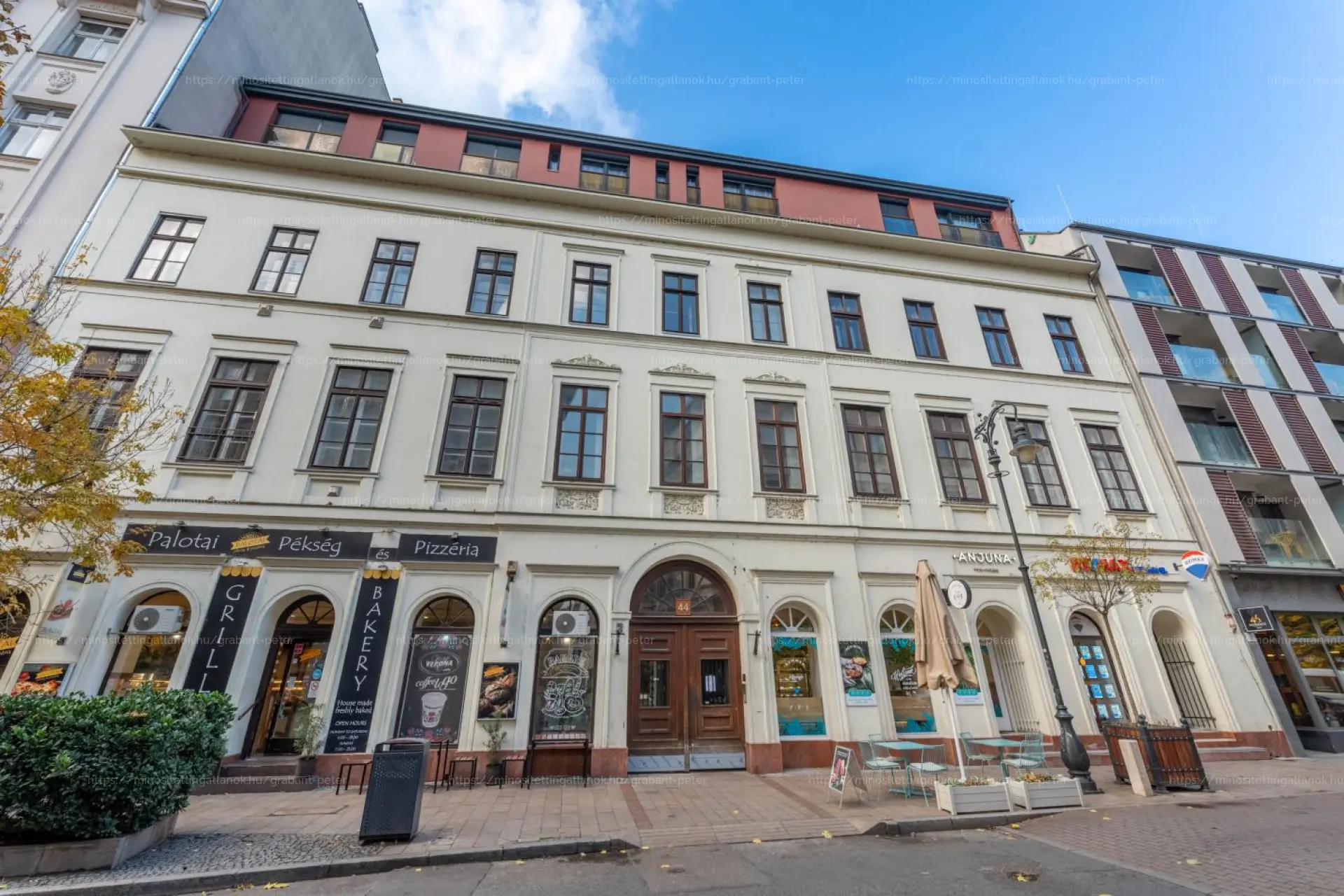 A társasház 1838-ban épült klasszicista, polgári stílusban, és a belső Erzsébetváros egyik legjellegzetesebb és legrégebbi épülete. 2021-ben átfogó felújításon esett át, amely során a tetőtérre egy új szintet is ráépítettek, modern, újépítésű lakásokkal. A ház rendezett, jól karbantartott, a lépcsőház világos és tiszta, valamint lift is rendelkezésre áll. A lakóközösség igényes és csendes, ami jól tükröződik a közös területek állapotán is.