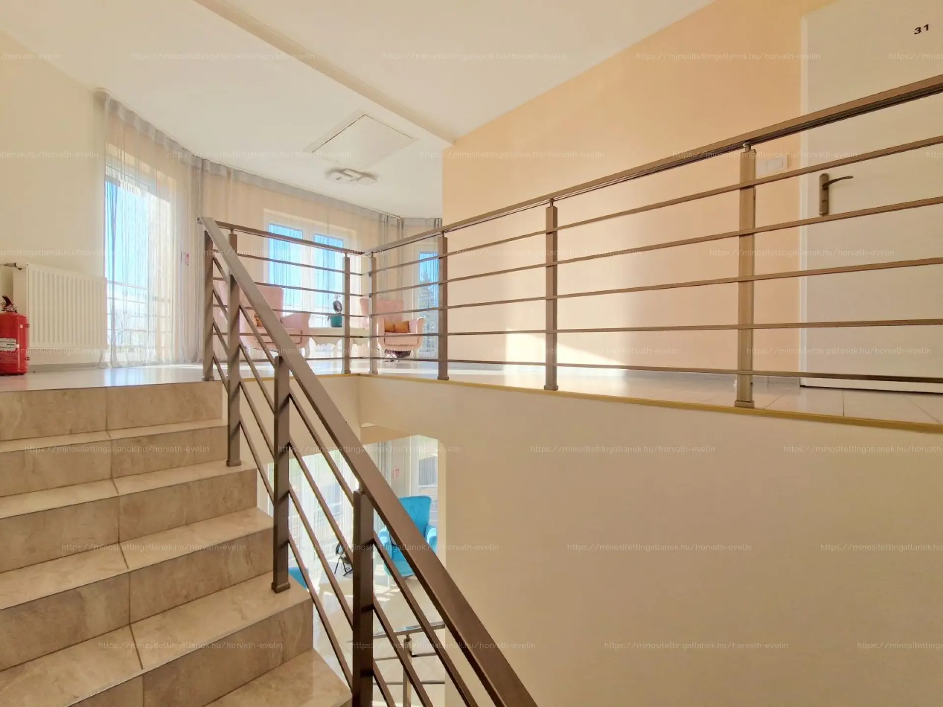 - Az EMELETre felérve szintén egy mindig világos előtér érhető el, továbbá 4 külön nyíló szoba, mely mindegyike külön fürdővel és erkélykapcsolattal bír.